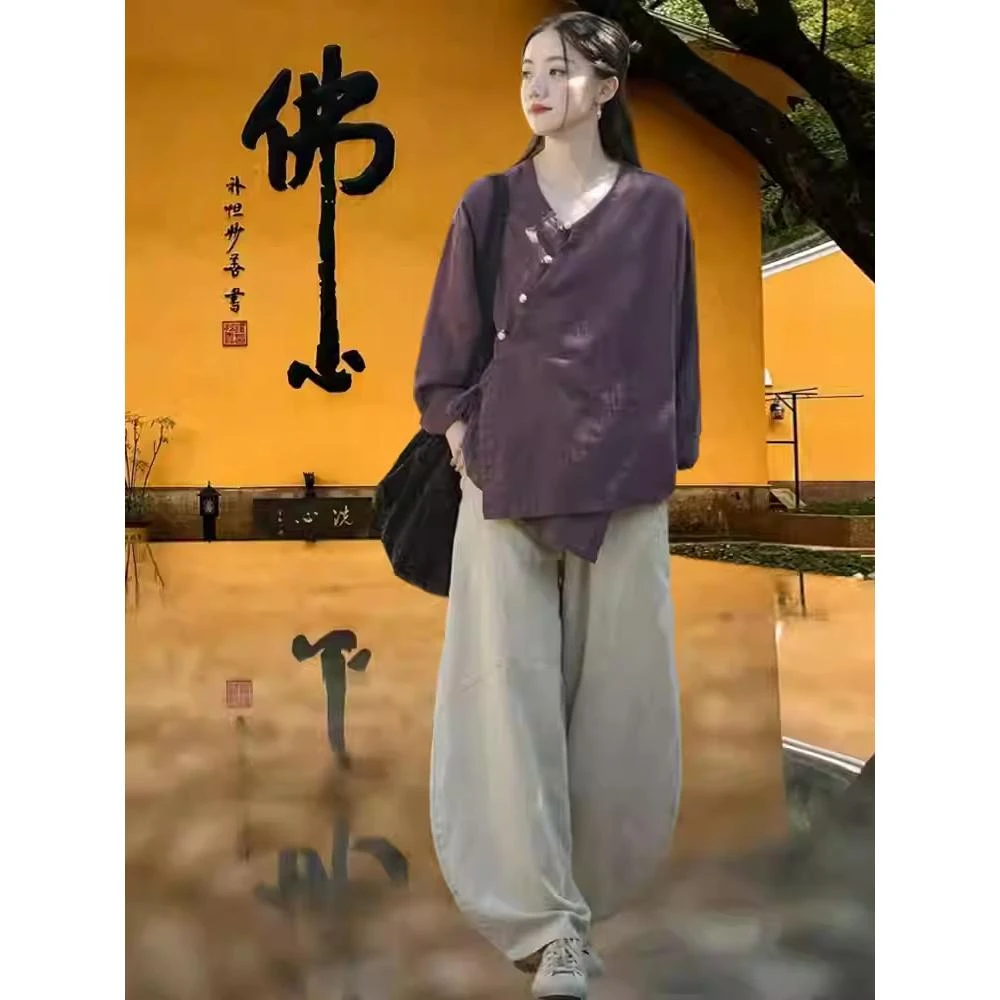 四季風精選好物 寺廟修行禪服女佛禪意女裝禪修居士服女款竹節棉麻素衣拜佛套裝