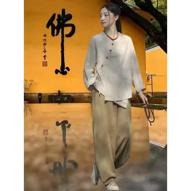 四季風精選好物 寺廟修行禪服女佛禪意女裝禪修居士服女款竹節棉麻素衣拜佛套裝