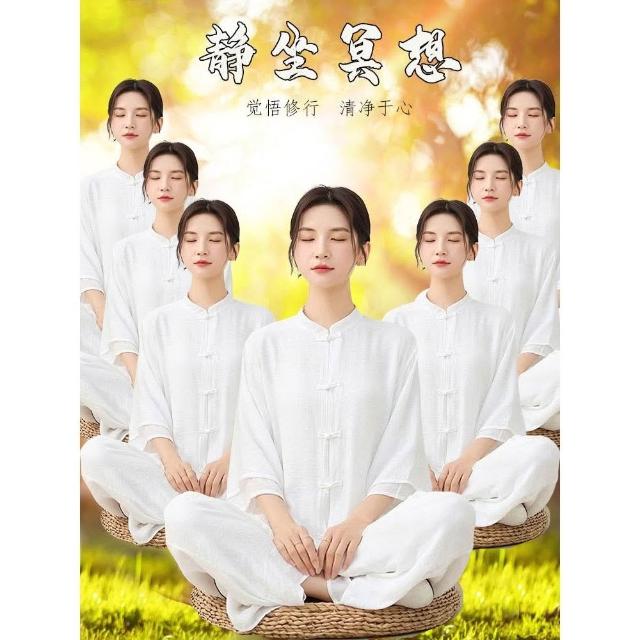 四季風精選好物 修行禪服女夏季佛系禪意女裝白色棉麻套裝靜坐冥想服裝居士禪修服