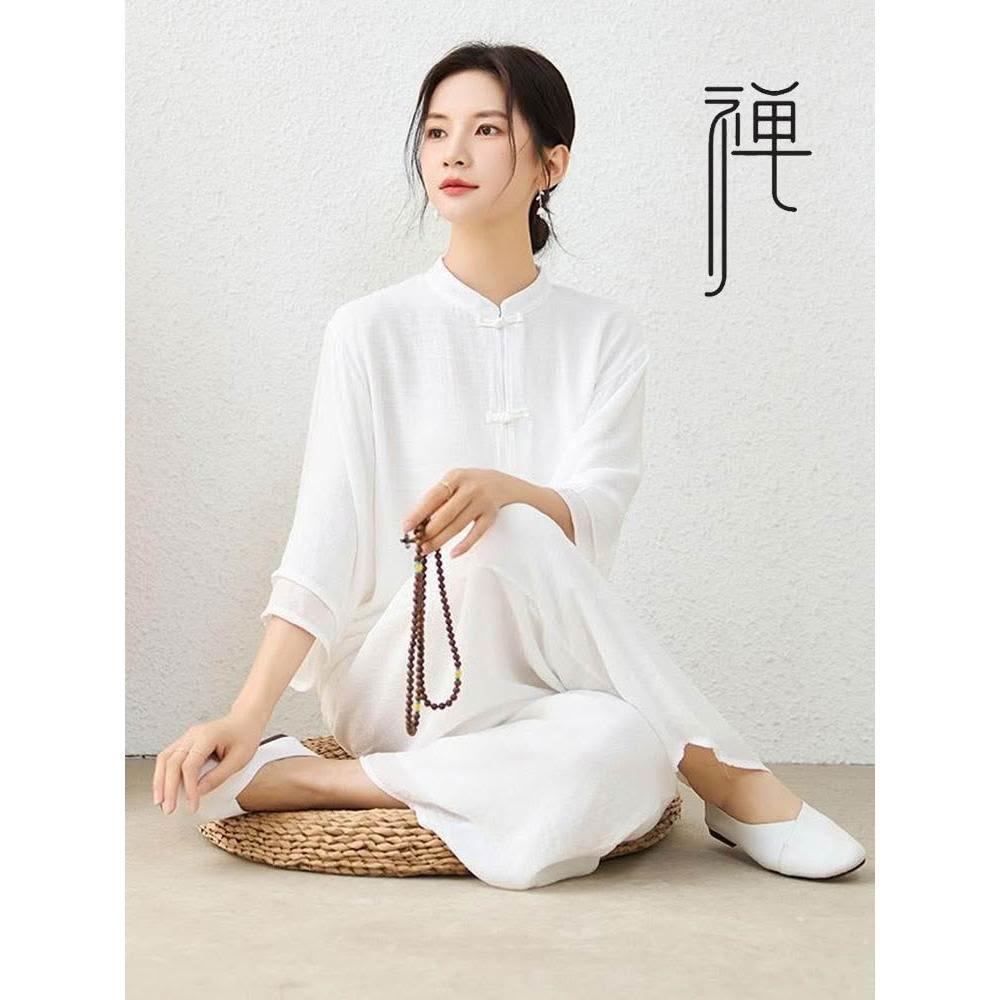 四季風精選好物 修行禪服女夏季佛系禪意女裝白色棉麻套裝靜坐冥想服裝居士禪修服