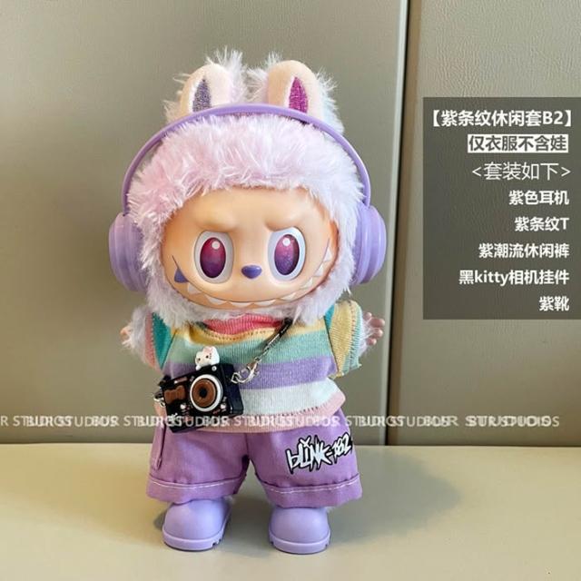 四季風精選好物拉布布娃衣前方高能量3.0幸運衣服夏季labubu著替17CM休閒套裝平靜