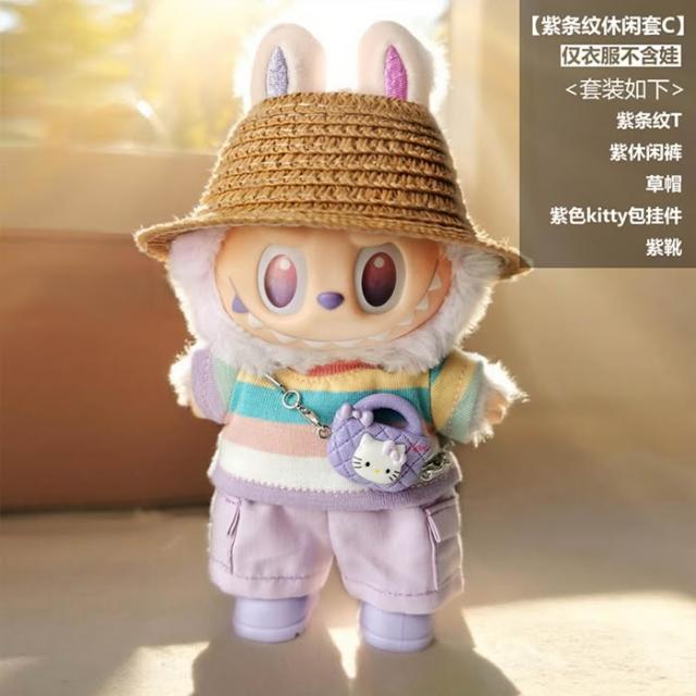 四季風精選好物拉布布娃衣前方高能量3.0幸運衣服夏季labubu著替17CM休閒套裝平靜