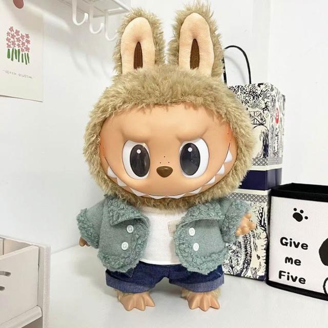 四季風精選好物 38cm拉布布搪膠毛絨娃娃衣服Labubu公仔MOKOKO甜心粉愛心挎包裙萌