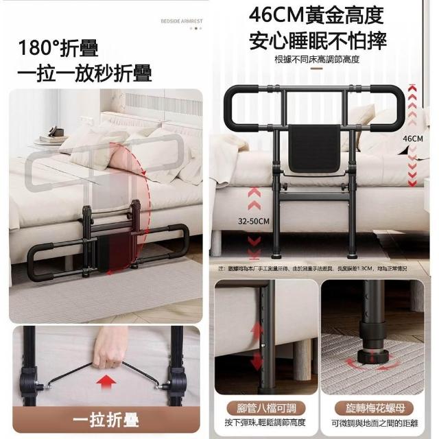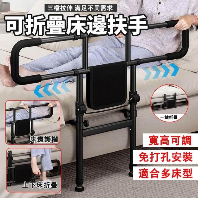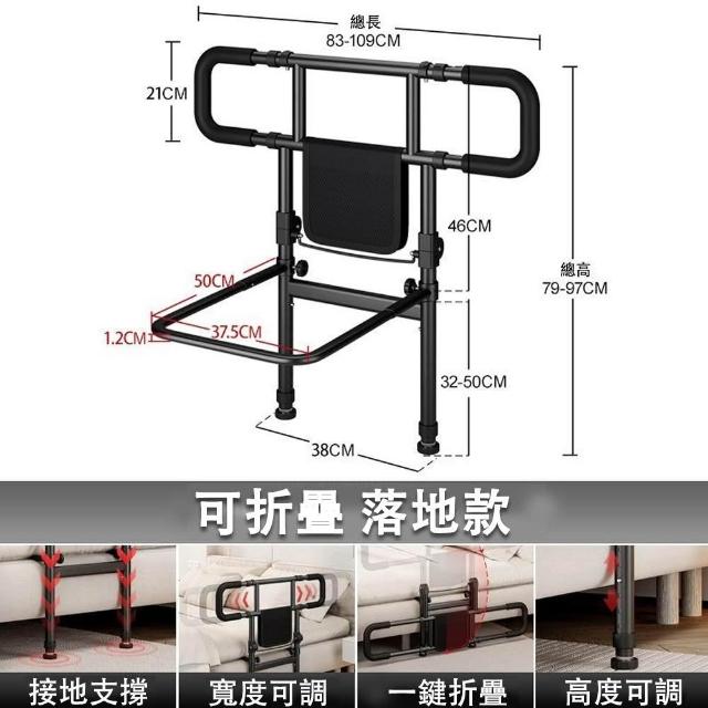 宅造印象床邊扶手+防摔護欄二合一 起身輔助器 可調高低寬度 附收納袋 落地式老人起床輔助器 安全床扶手