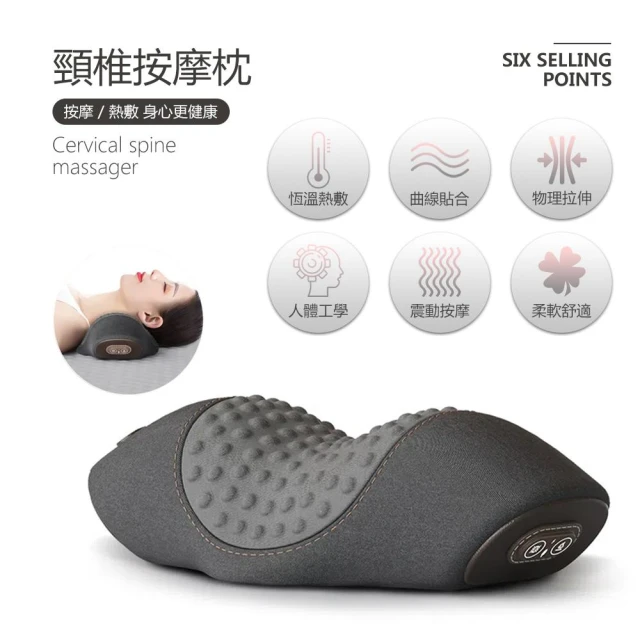 宅造印象溫感舒壓 頸部按摩枕 記憶棉枕芯 多段震動 可拆洗枕套