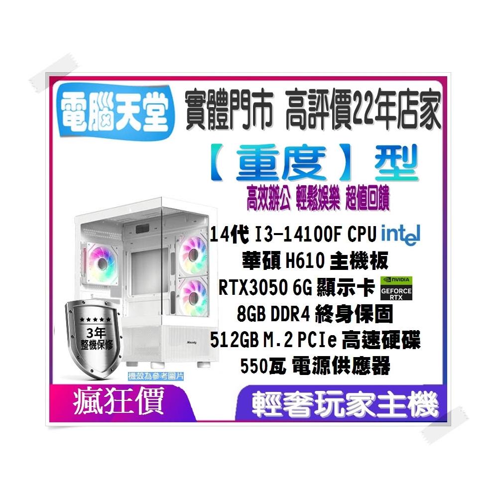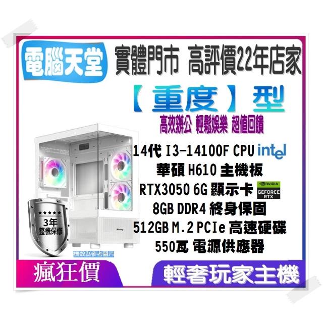 華碩平台重度型 I3 14100F/8G/RTX3050 6G/512GM.2/550W 3D繪圖 電腦主機 文書 電腦天堂