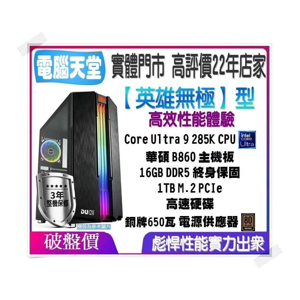 華碩平台英雄無極型 Core Ultra 9 285K/1T M.2/16G/銅牌650瓦 電腦主機 主機維修 PC 電腦天堂