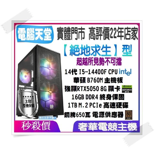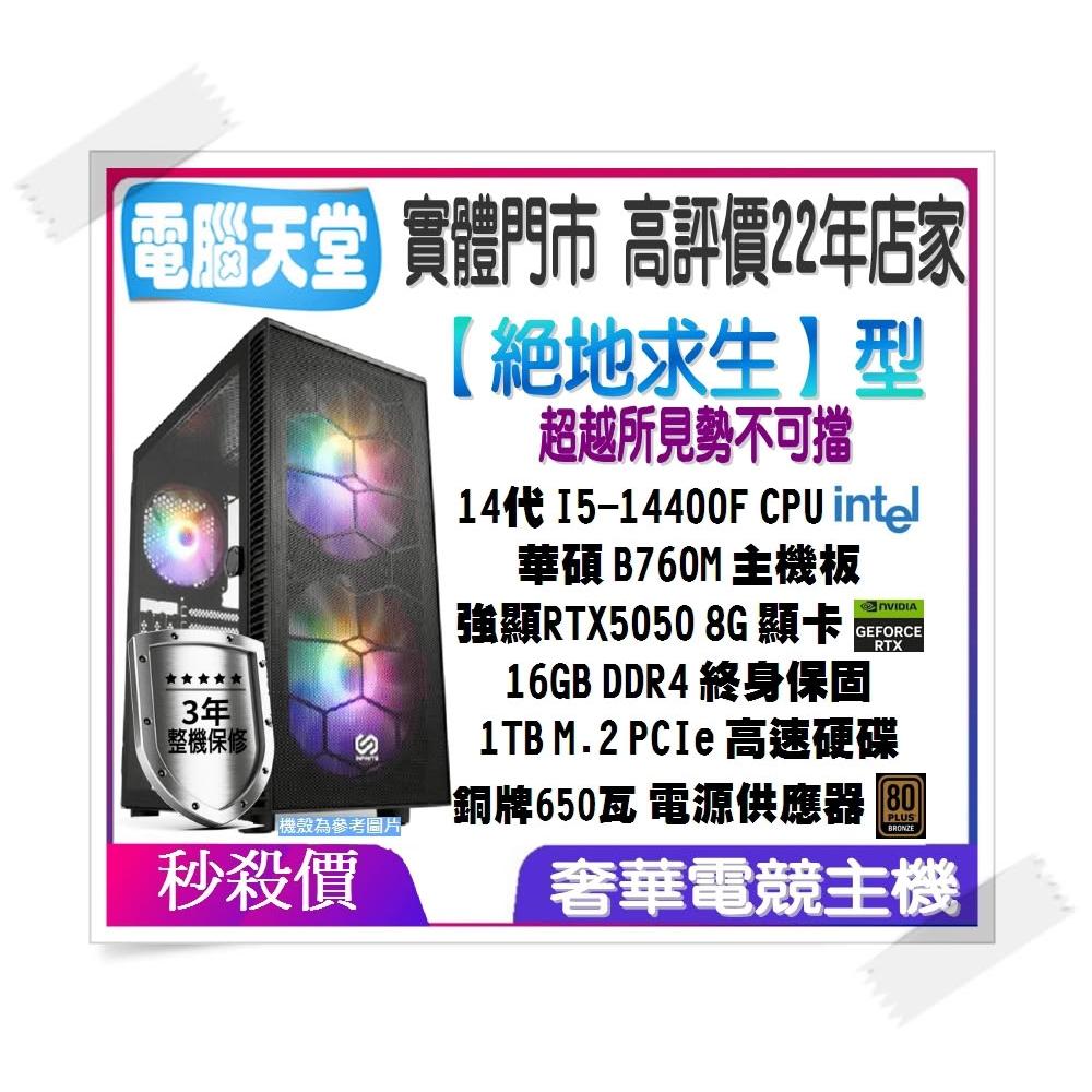 華碩平台絕地求生型 I5 14400F/RTX5050 8G/16G/1TB M.2/銅牌650瓦 電競電腦 主機 電腦天堂