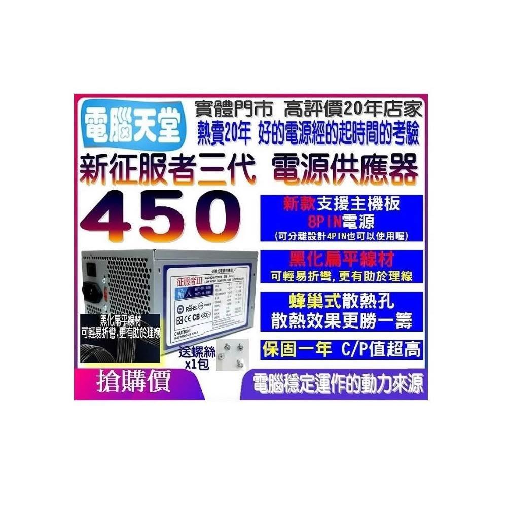 新版扁線 征服者450 支援主機板8PIN 電源供應器 POWER 電腦電源 12cm風扇 不含電源線 電腦天堂