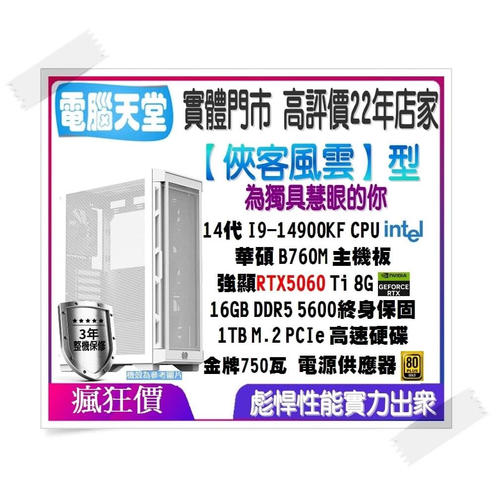 華碩平台俠客風雲型 I9 14900KF/16G/1TB/RTX5060 Ti/金牌750W 電腦天堂