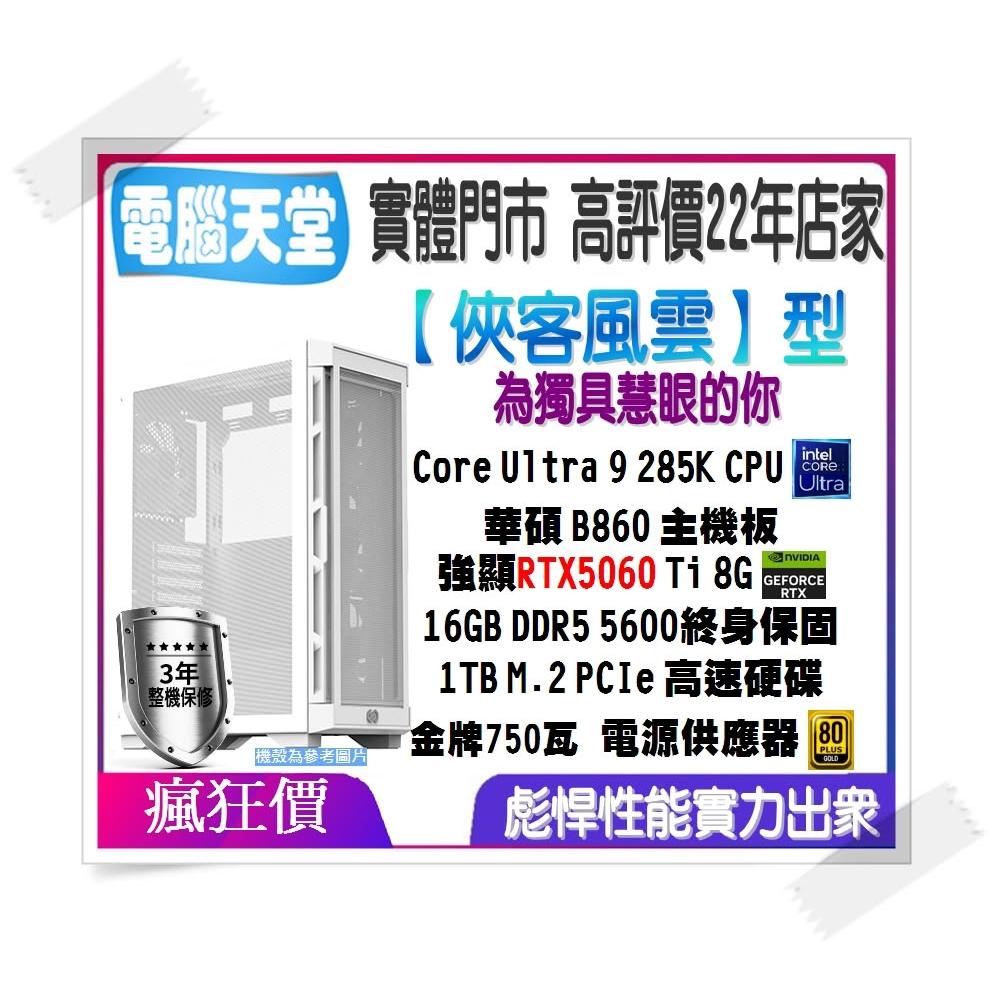 華碩平台俠客風雲型 Ultra 9 285K/16G/1TB/RTX5060 Ti/金牌750W 主機客製化辦公 電腦天堂