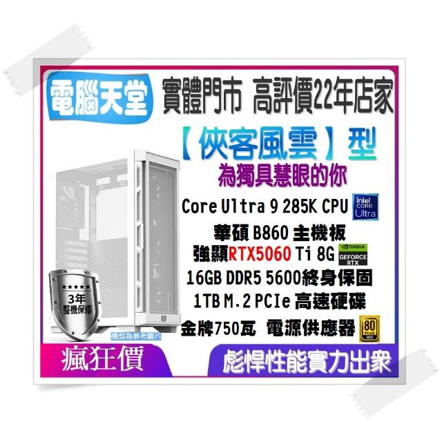 華碩平台俠客風雲型 Ultra 9 285K/16G/1TB/RTX5060 Ti/金牌750W 主機客製化辦公 電腦天堂