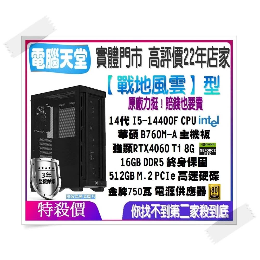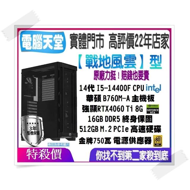 華碩平台I5 14400F+強顯RTX4060 Ti+512G+16G+金牌750瓦《戰地風雲型》