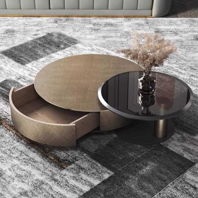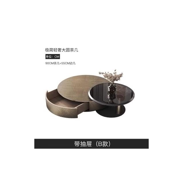 輕奢現代簡約圓形茶几組合客廳家用不銹鋼玻璃創意大小圓桌傢俱