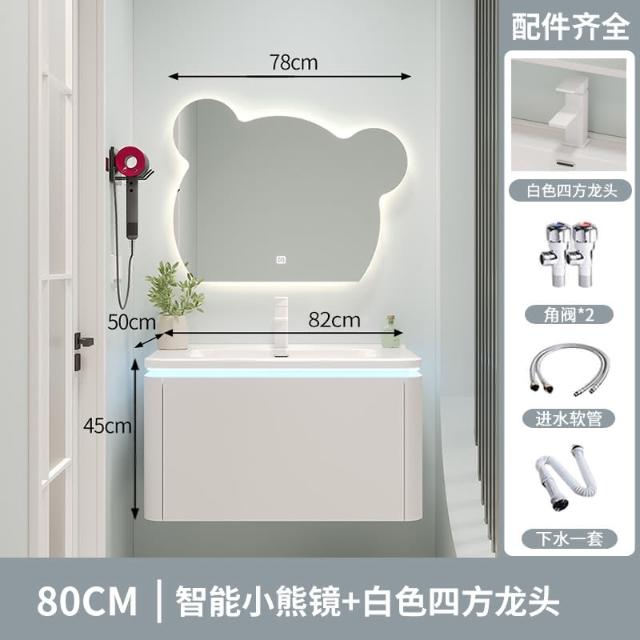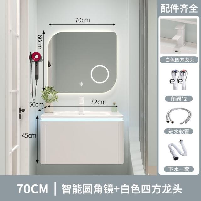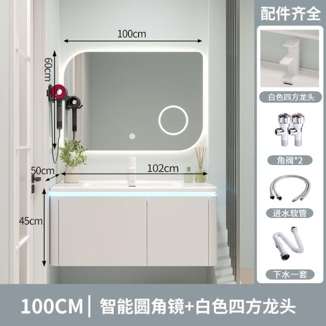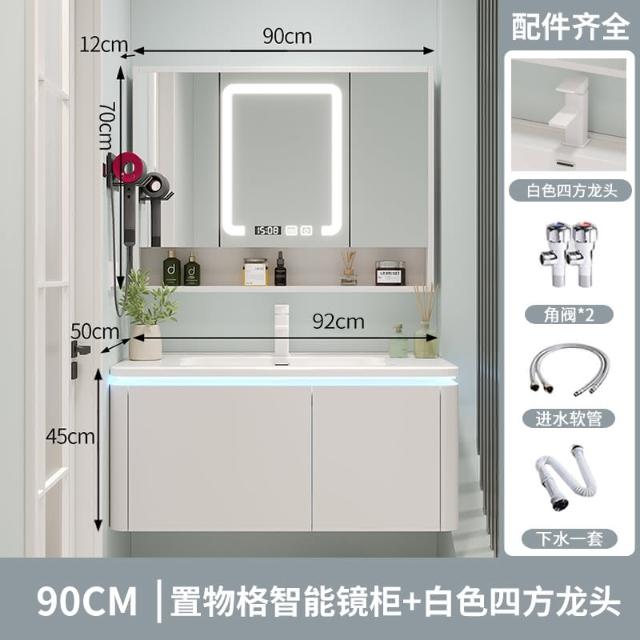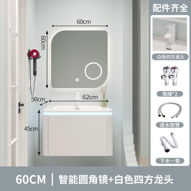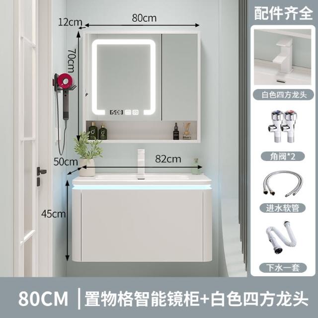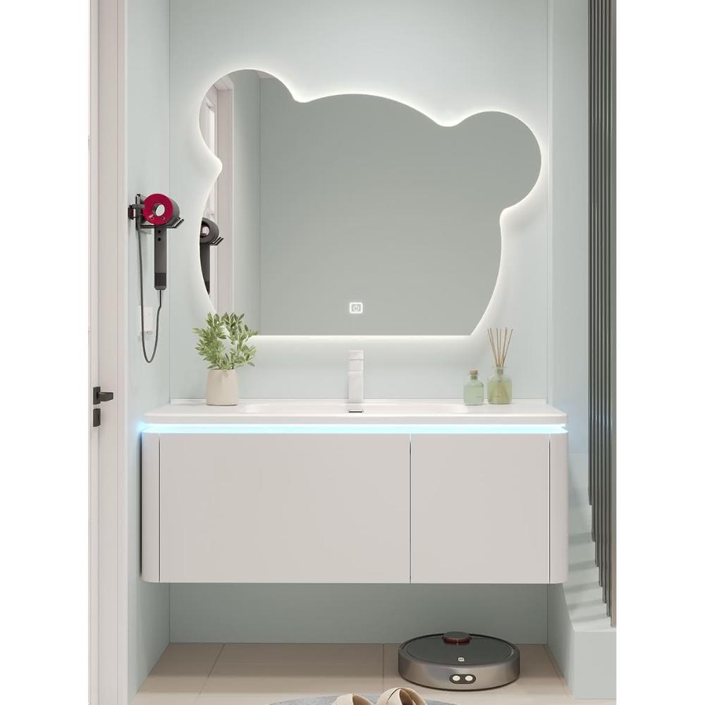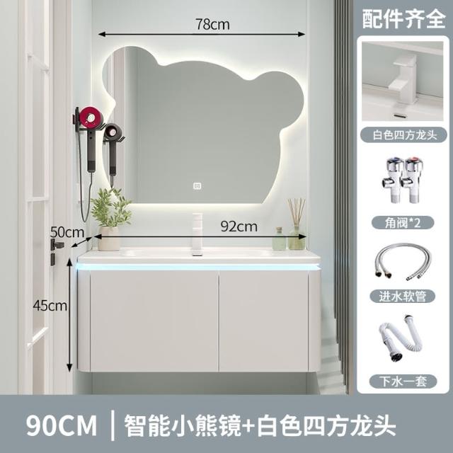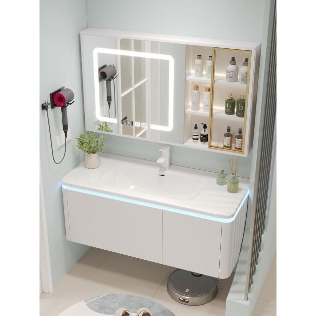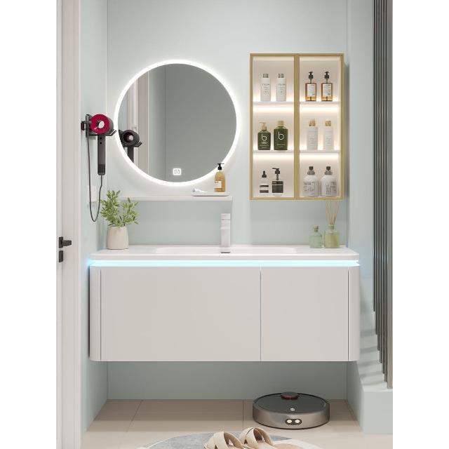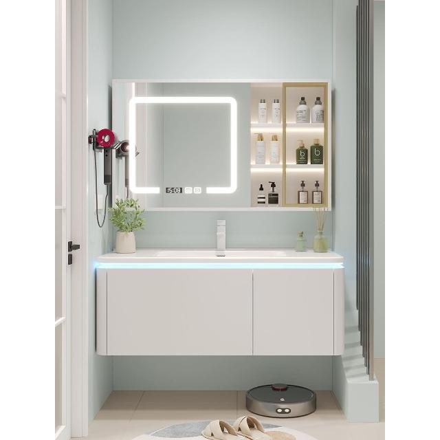 奶油風陶瓷一體盆智能浴室櫃組合圓角洗手洗臉盆衛浴衛生間洗漱臺