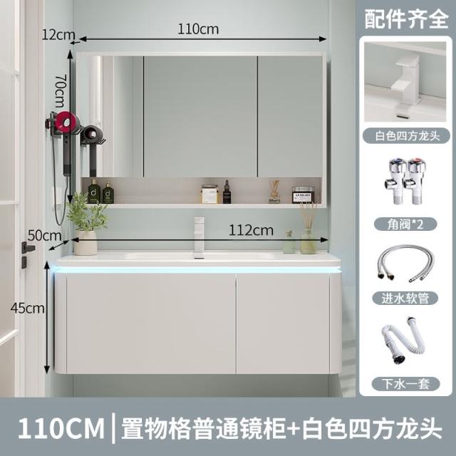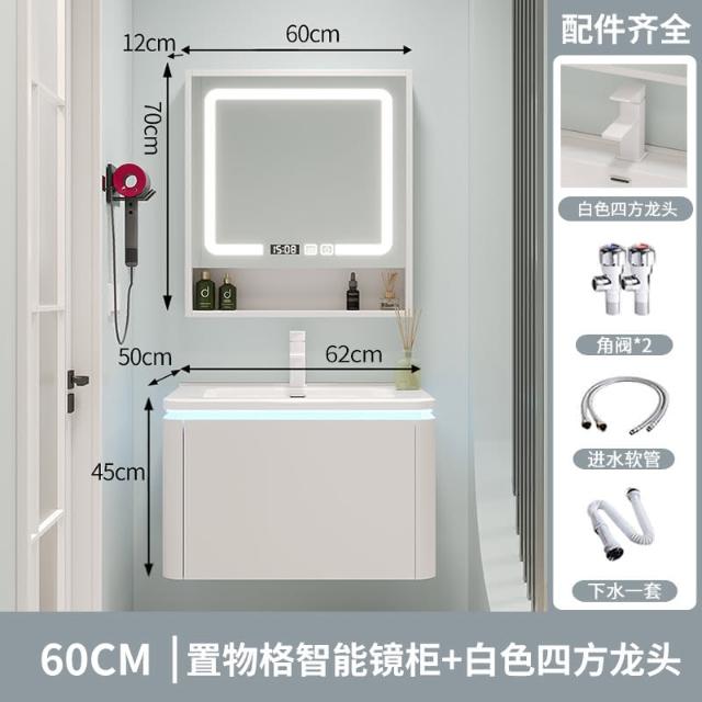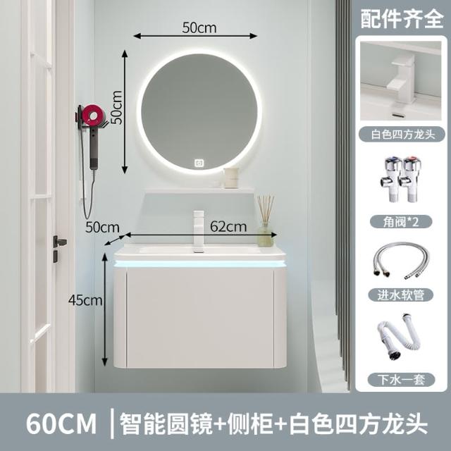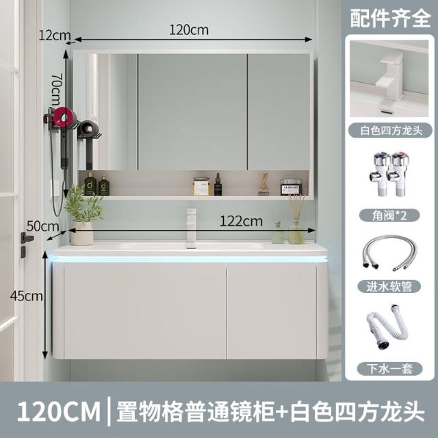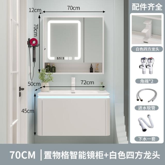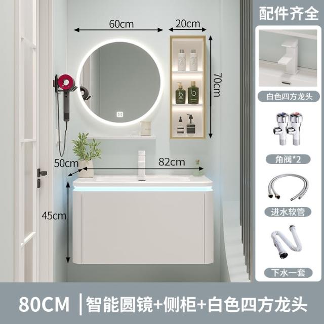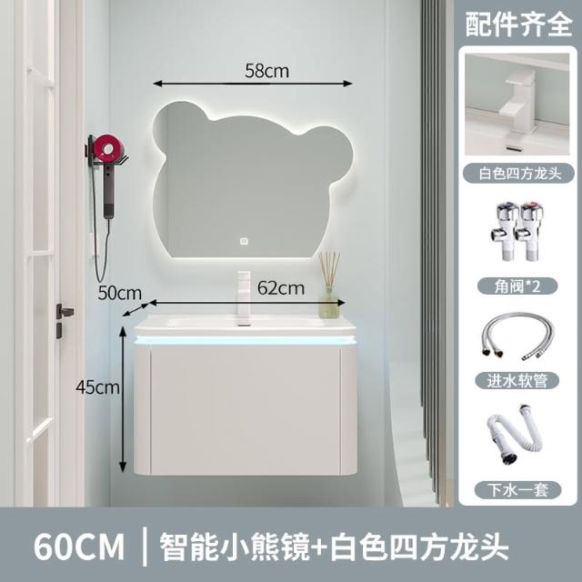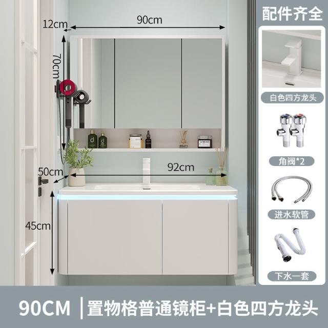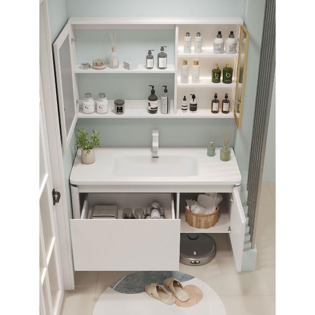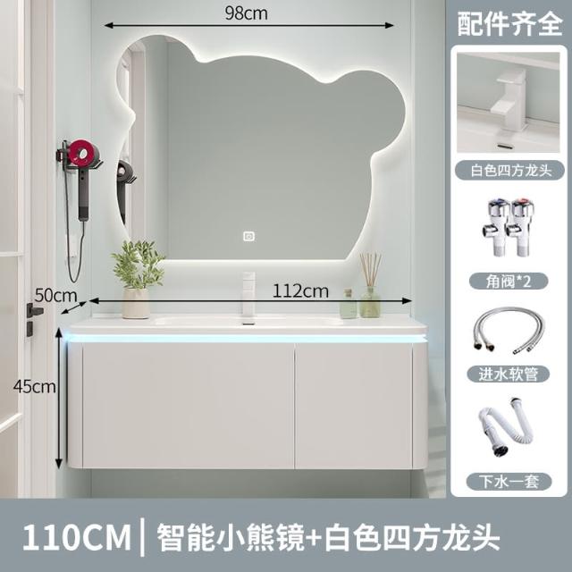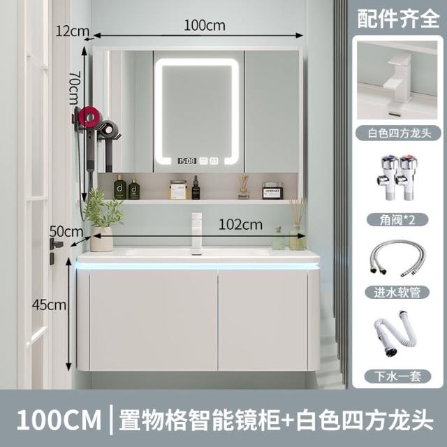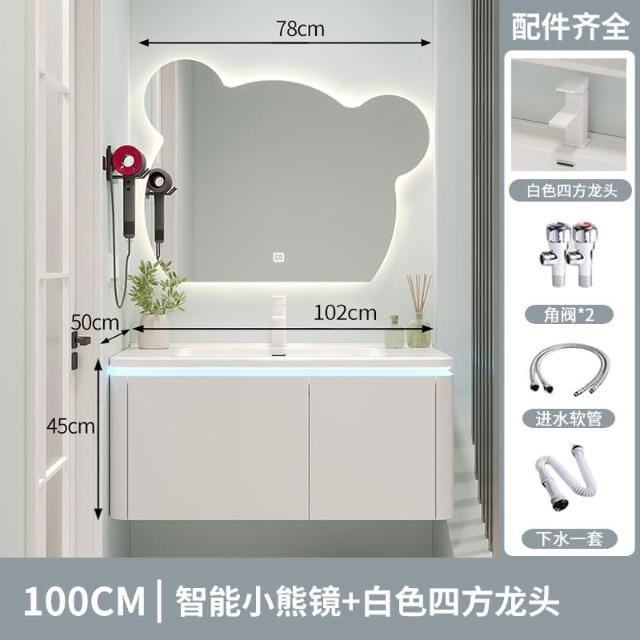 奶油風陶瓷一體盆智能浴室櫃組合圓角洗手洗臉盆衛浴衛生間洗漱臺