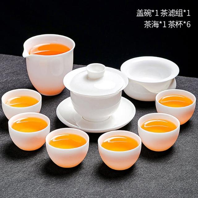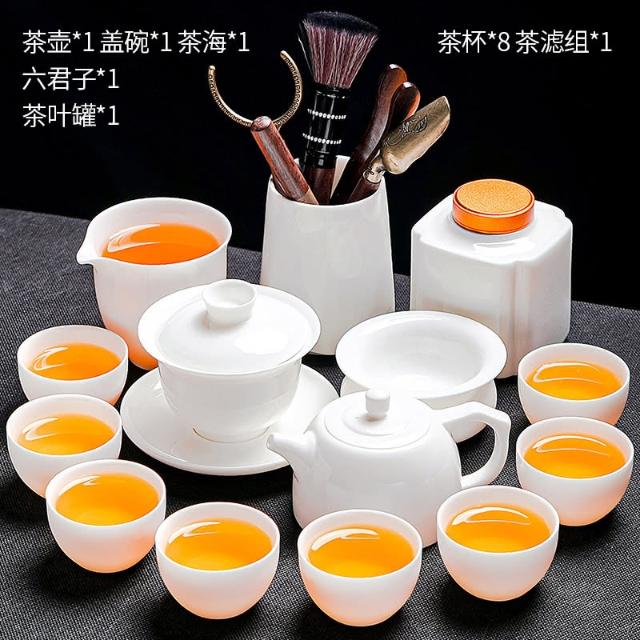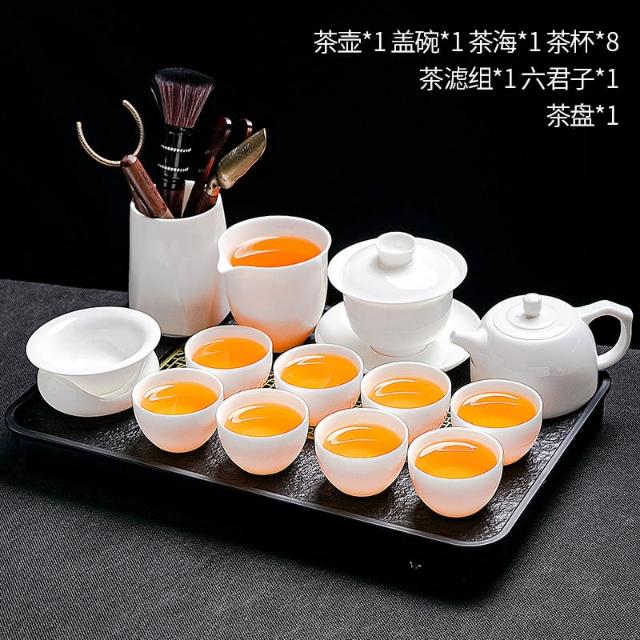 德化羊脂玉茶具套裝家用輕奢高檔白玉白瓷功夫泡茶壺茶杯蓋碗會客