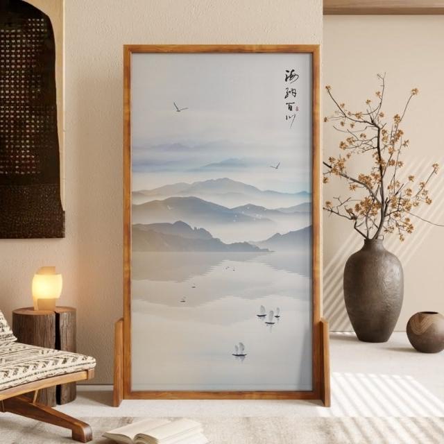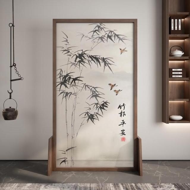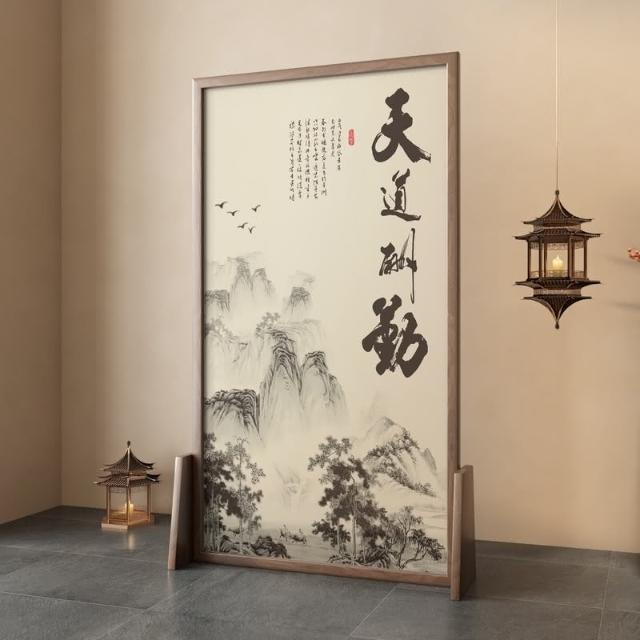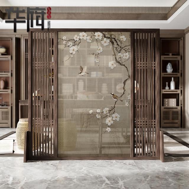 新中式屏風隔斷客廳進門玄關臥室遮擋家用實木移動辦公室入戶茶室