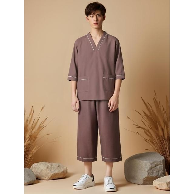 新款泰式汗蒸服秋冬7分褲袖男款足浴按摩服洗浴客人睡衣桑拿浴袍