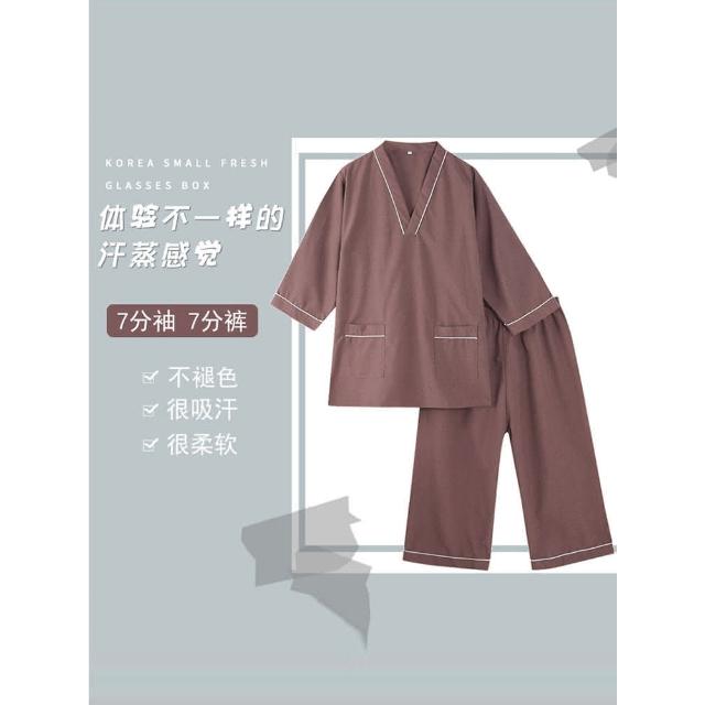 新款泰式汗蒸服秋冬7分褲袖男款足浴按摩服洗浴客人睡衣桑拿浴袍