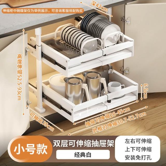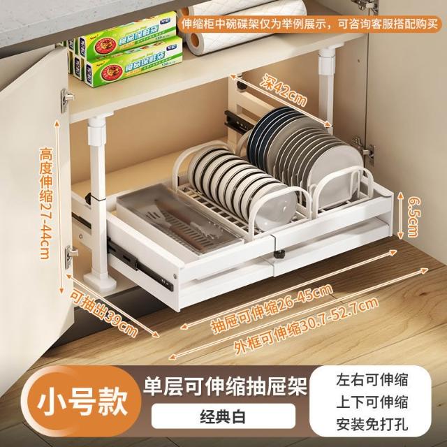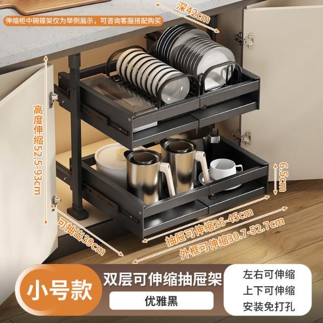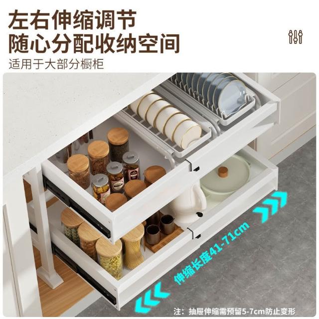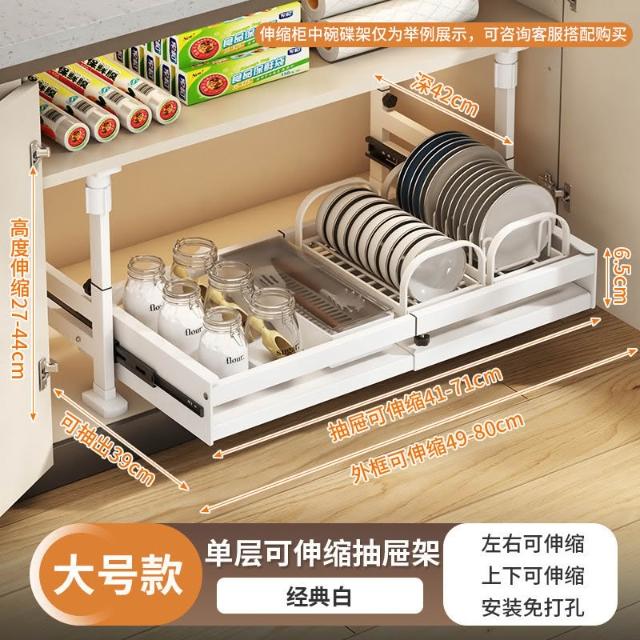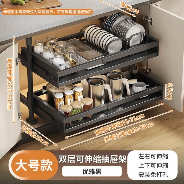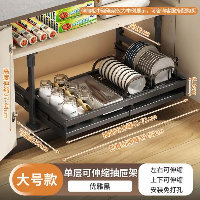 免打孔櫥櫃收納架廚房抽屜式置物架下水槽抽拉籃可伸縮櫃內分層架
