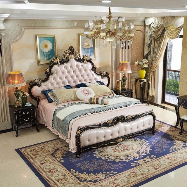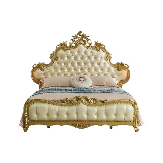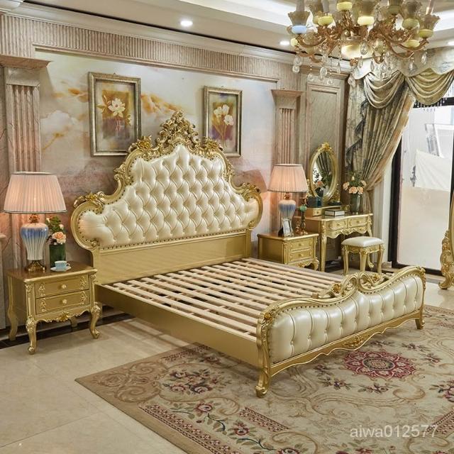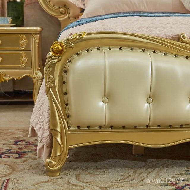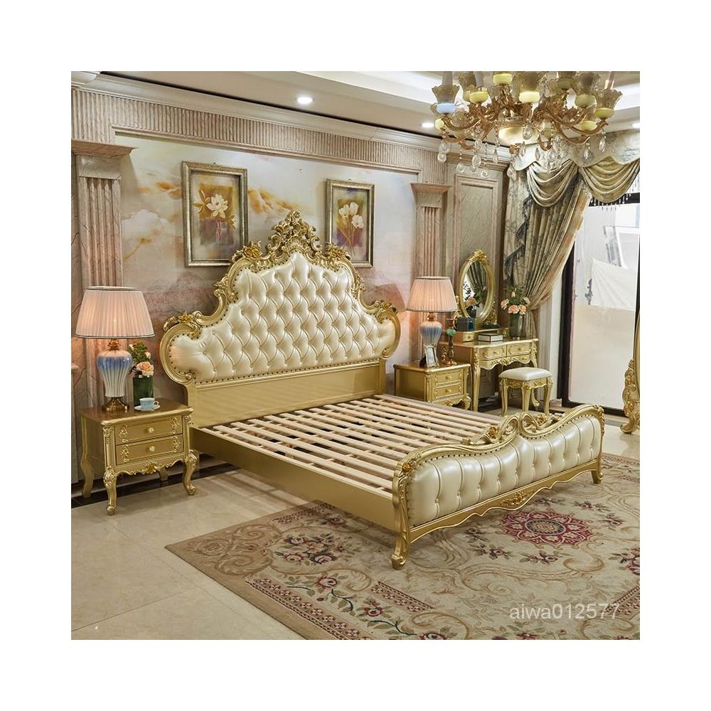 主臥床歐式雙人床奢華1.8米香檳色法式真皮實木婚床橡木公主床 床架 床組 榻榻米床架 雙人床 大床 懸浮床
