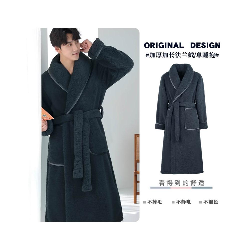 2024年新款睡衣男士秋冬季加厚加絨珊瑚絨睡袍長款浴袍晨袍家居服