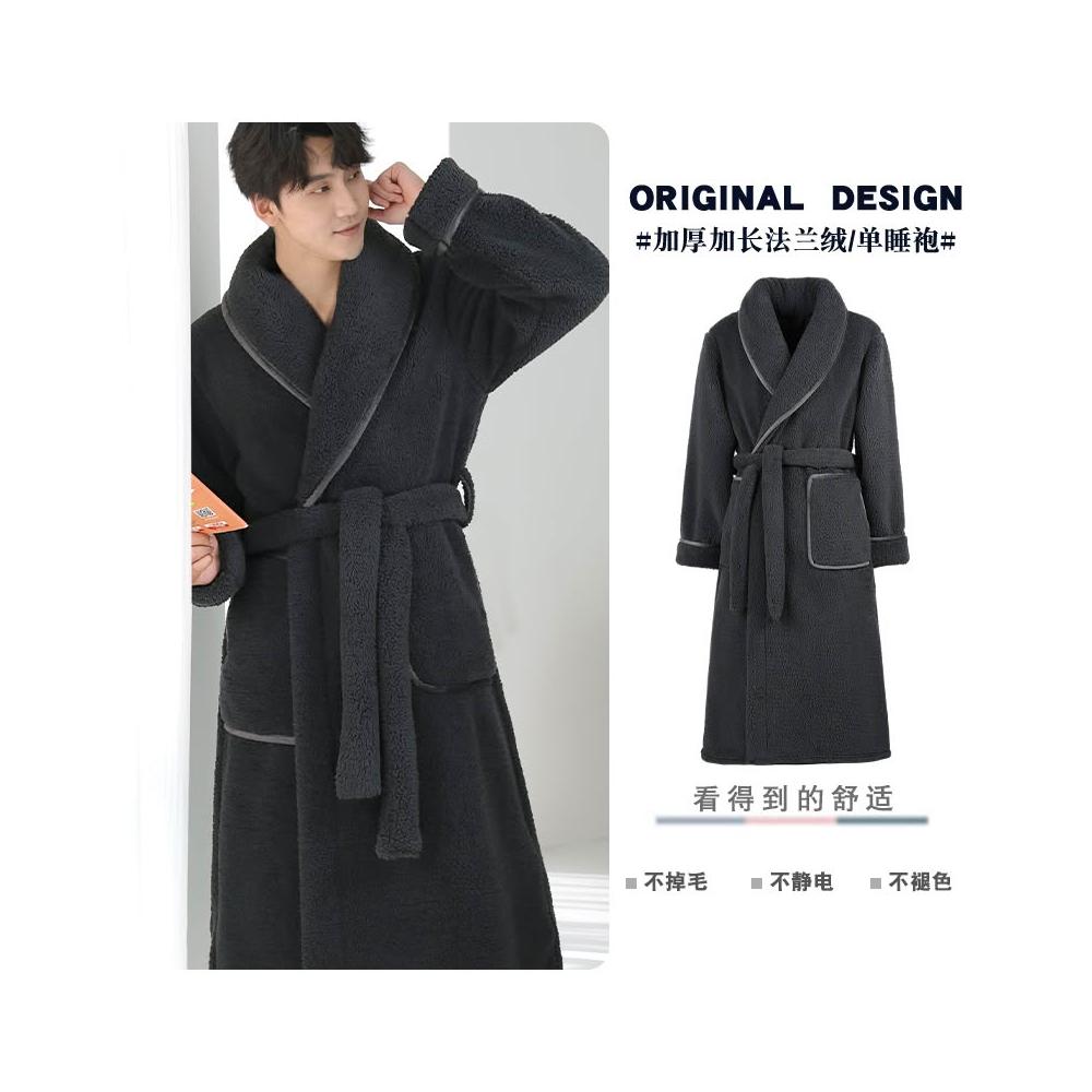 2024年新款睡衣男士秋冬季加厚加絨珊瑚絨睡袍長款浴袍晨袍家居服