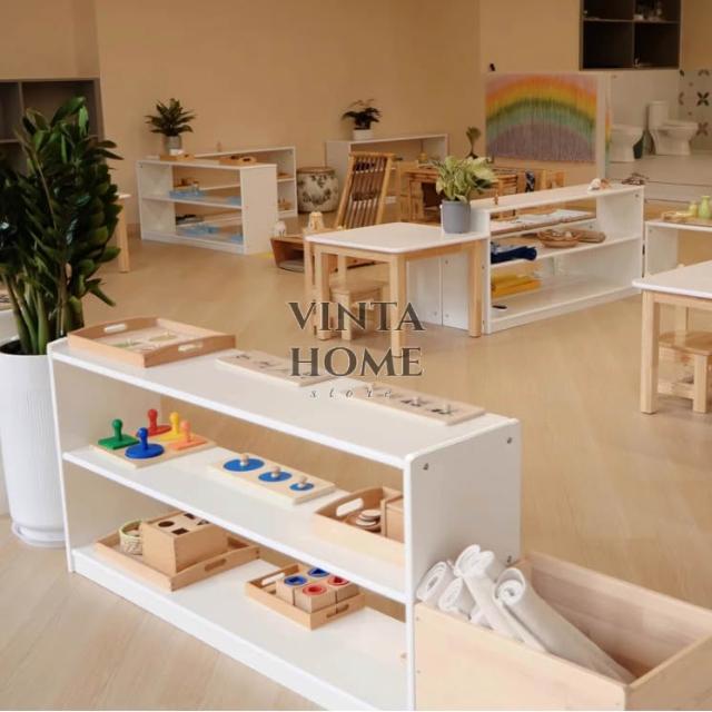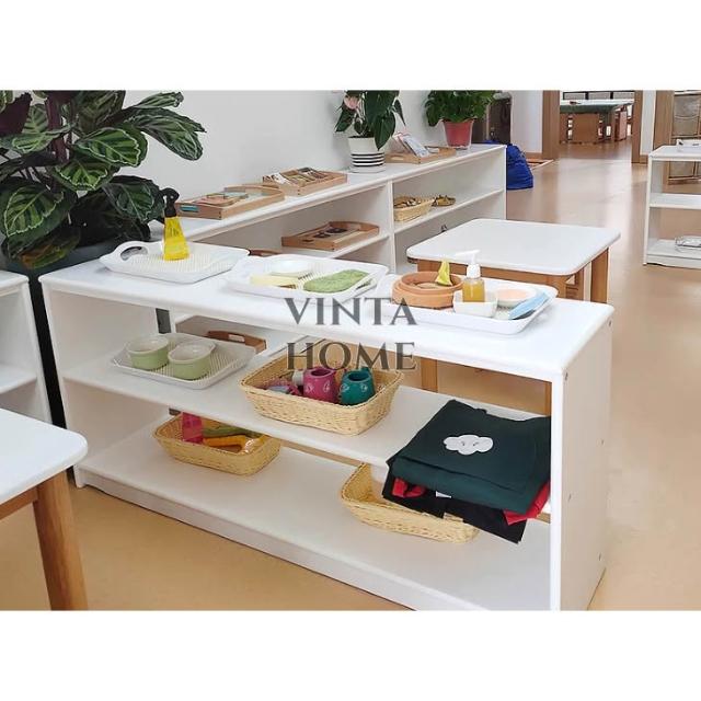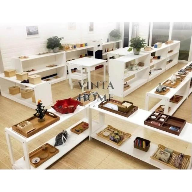 白色實木蒙氏教具櫃 收納櫃 置物櫃 收納架 置物架 教具櫃 幼兒園托育早教區角櫃 分區櫃 玩具收納櫃 松木收納櫃