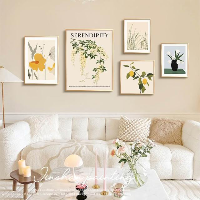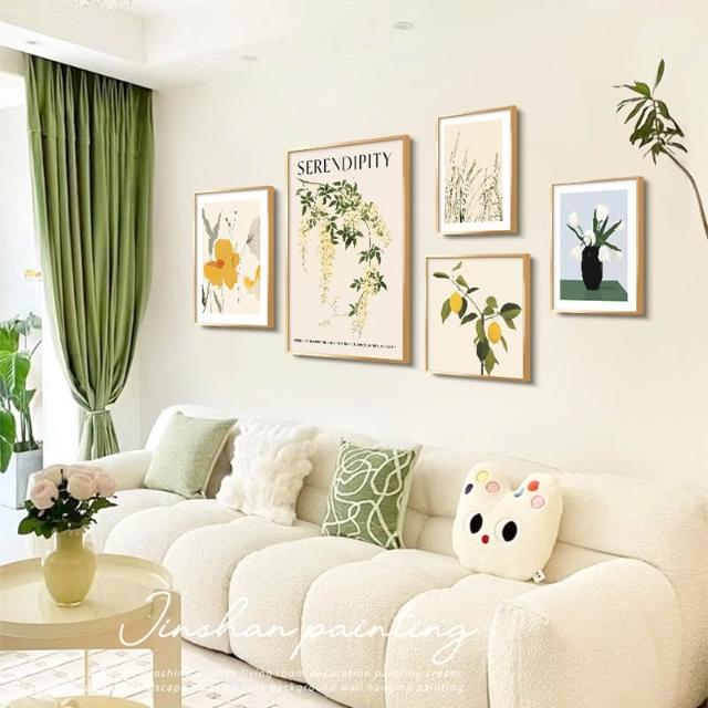 免運 油畫 開運風水畫 風景油畫 牡丹油畫 客廳掛畫 奶油風組合客廳掛畫藝術餐廳臥室畫客廳沙發背景牆裝飾畫2024新款