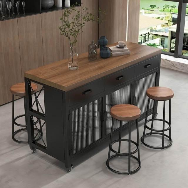 免運 中島桌 廚房料理台 廚房收納櫃 餐邊儲物櫃可移動中島臺櫃單獨料理餐邊桌小戶型家用定製開放式廚房吧臺隔斷