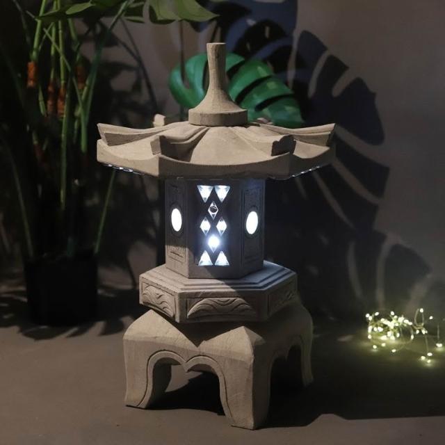 庭院裝飾 太陽能石燈籠青石仿古做舊石燈宮燈庭院燈草坪燈日式庭院裝飾擺件