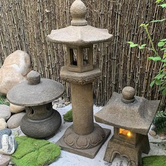 庭院裝飾 太陽能石燈籠青石仿古做舊石燈宮燈庭院燈草坪燈日式庭院裝飾擺件