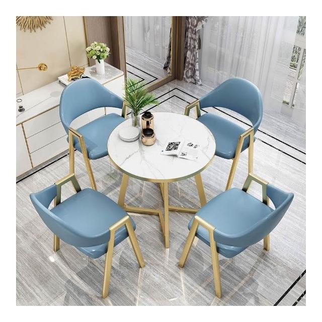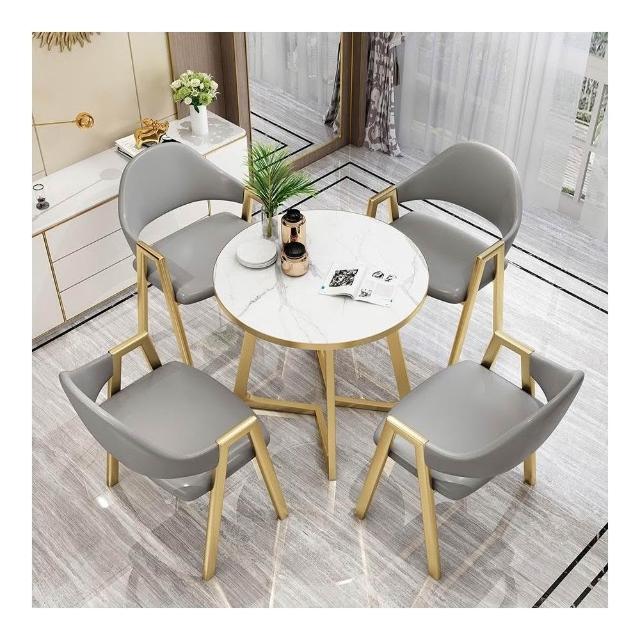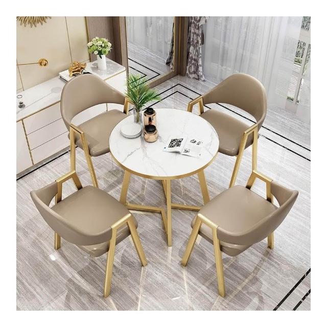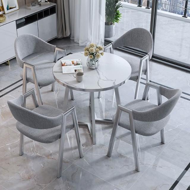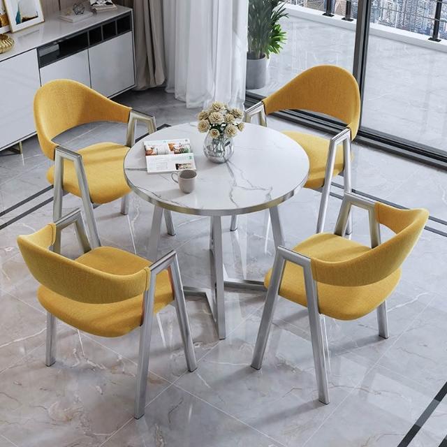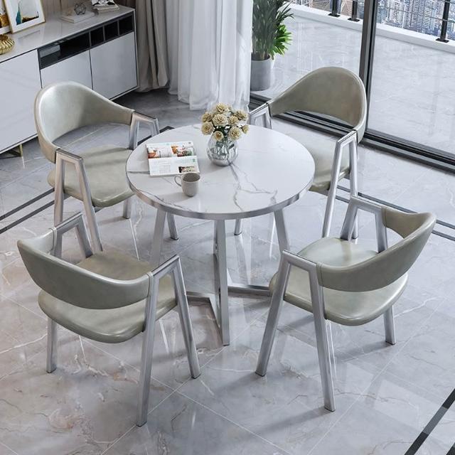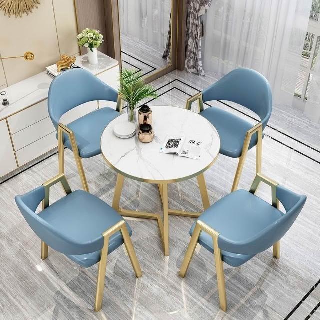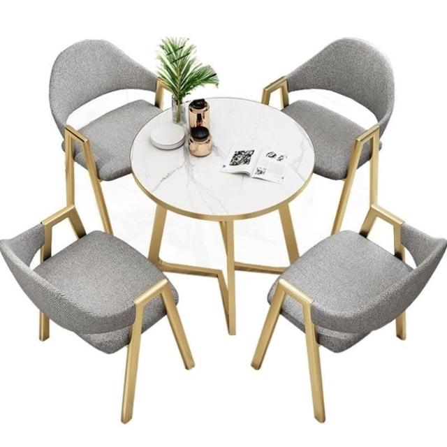 洽談桌椅 小圓桌會議桌椅輕奢圓形洽談桌椅組合售樓部會議室待客廳奶茶店網紅圓桌一桌四椅