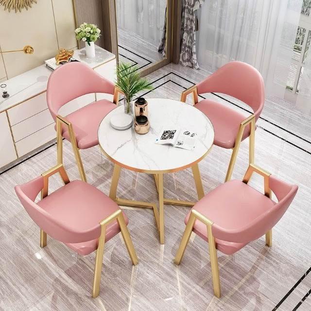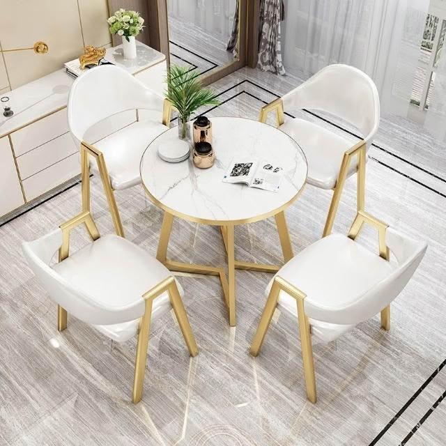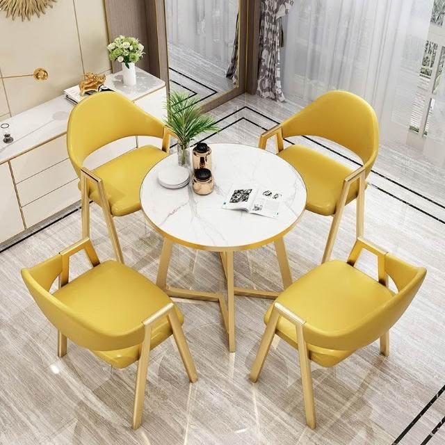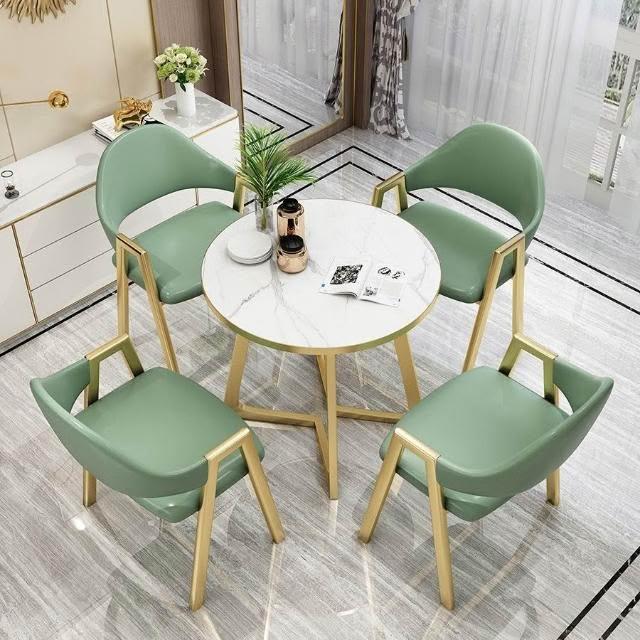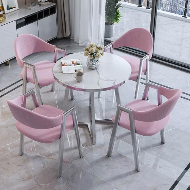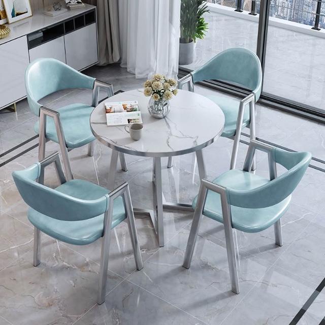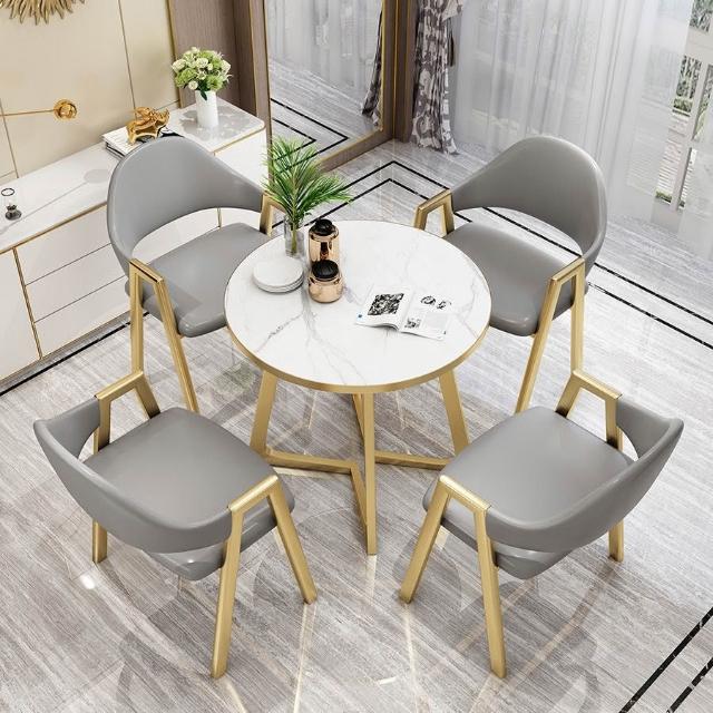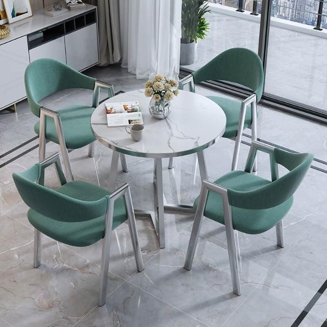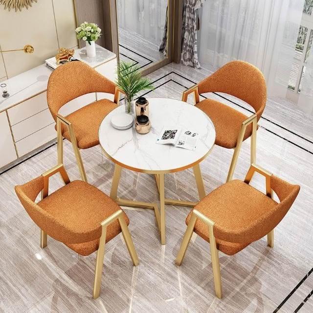洽談桌椅 小圓桌會議桌椅輕奢圓形洽談桌椅組合售樓部會議室待客廳奶茶店網紅圓桌一桌四椅