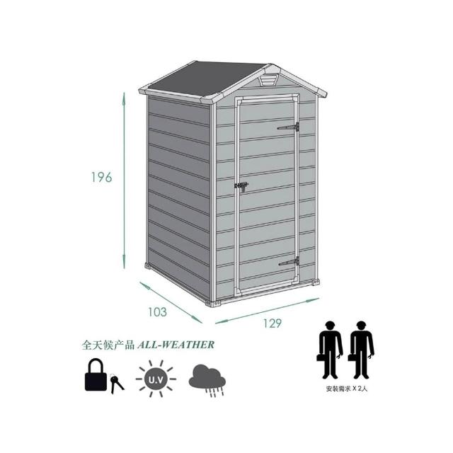 KETER MANOR4X3戶外塑膠收納儲物屋防水防曬小型花園庭院工具間