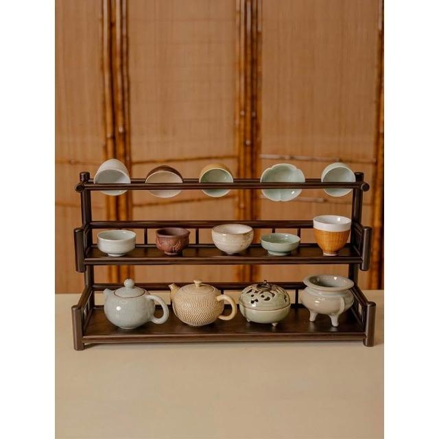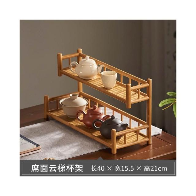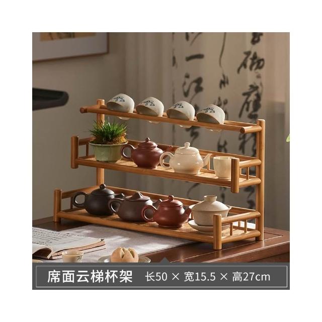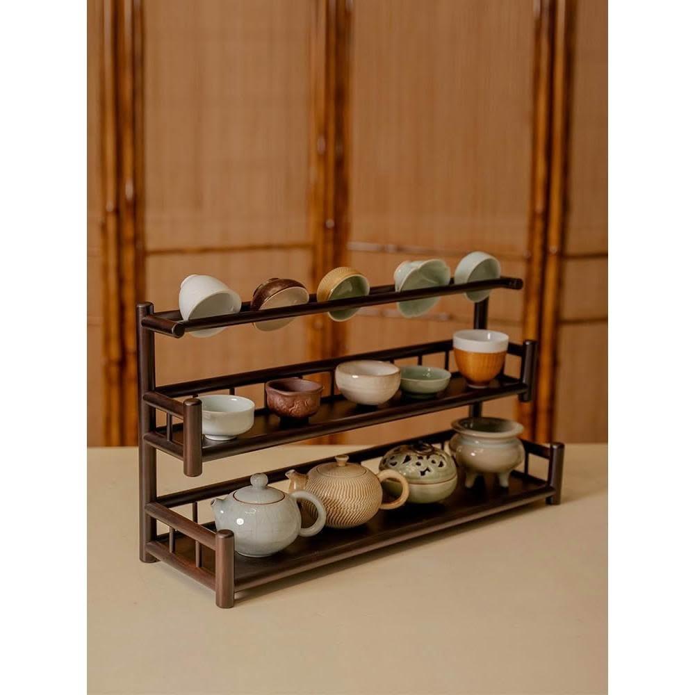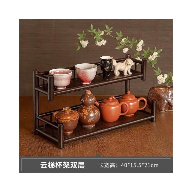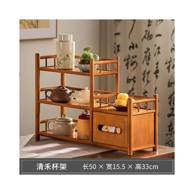 桌面博古架實木茶杯架子茶具收納架辦公室茶室小型茶臺茶桌置物架