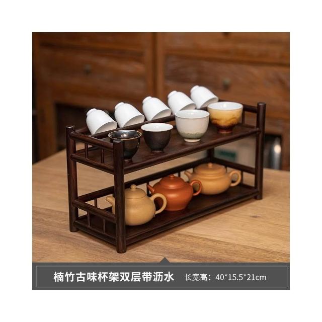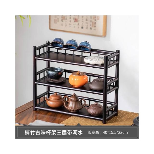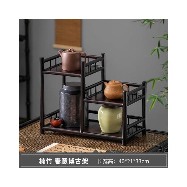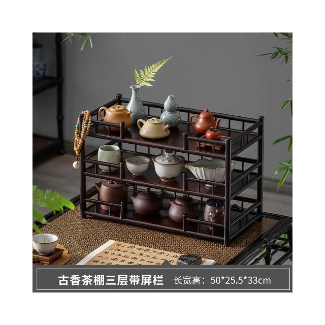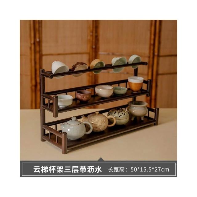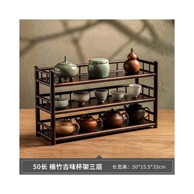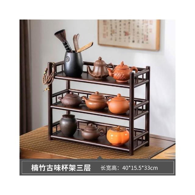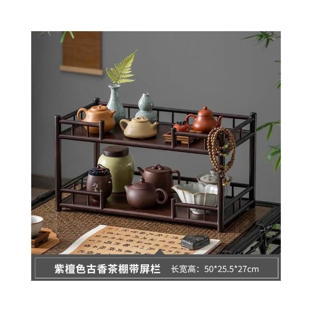 桌面博古架實木茶杯架子茶具收納架辦公室茶室小型茶臺茶桌置物架