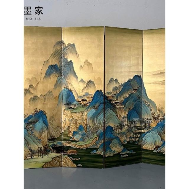 手繪金箔屏風宋代千裏江山圖新中式山水畫客廳隔斷辦公室茶室定制