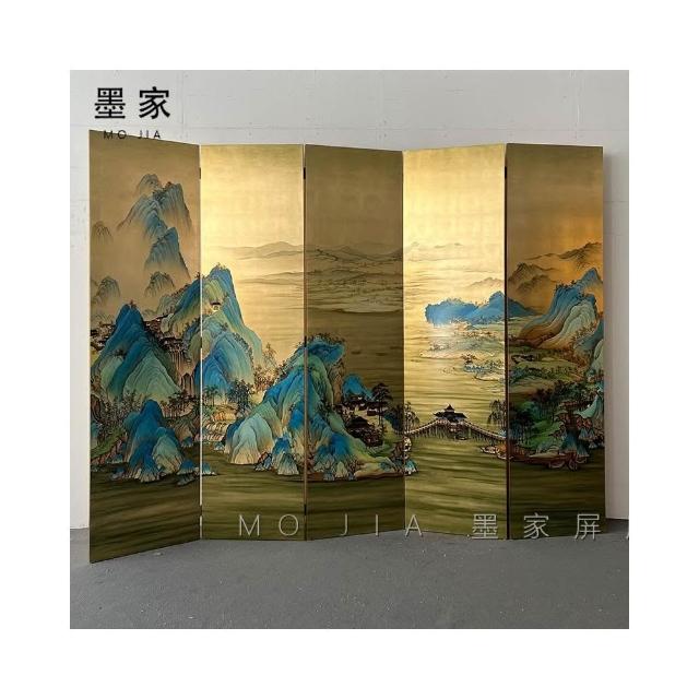 手繪金箔屏風宋代千裏江山圖新中式山水畫客廳隔斷辦公室茶室定制