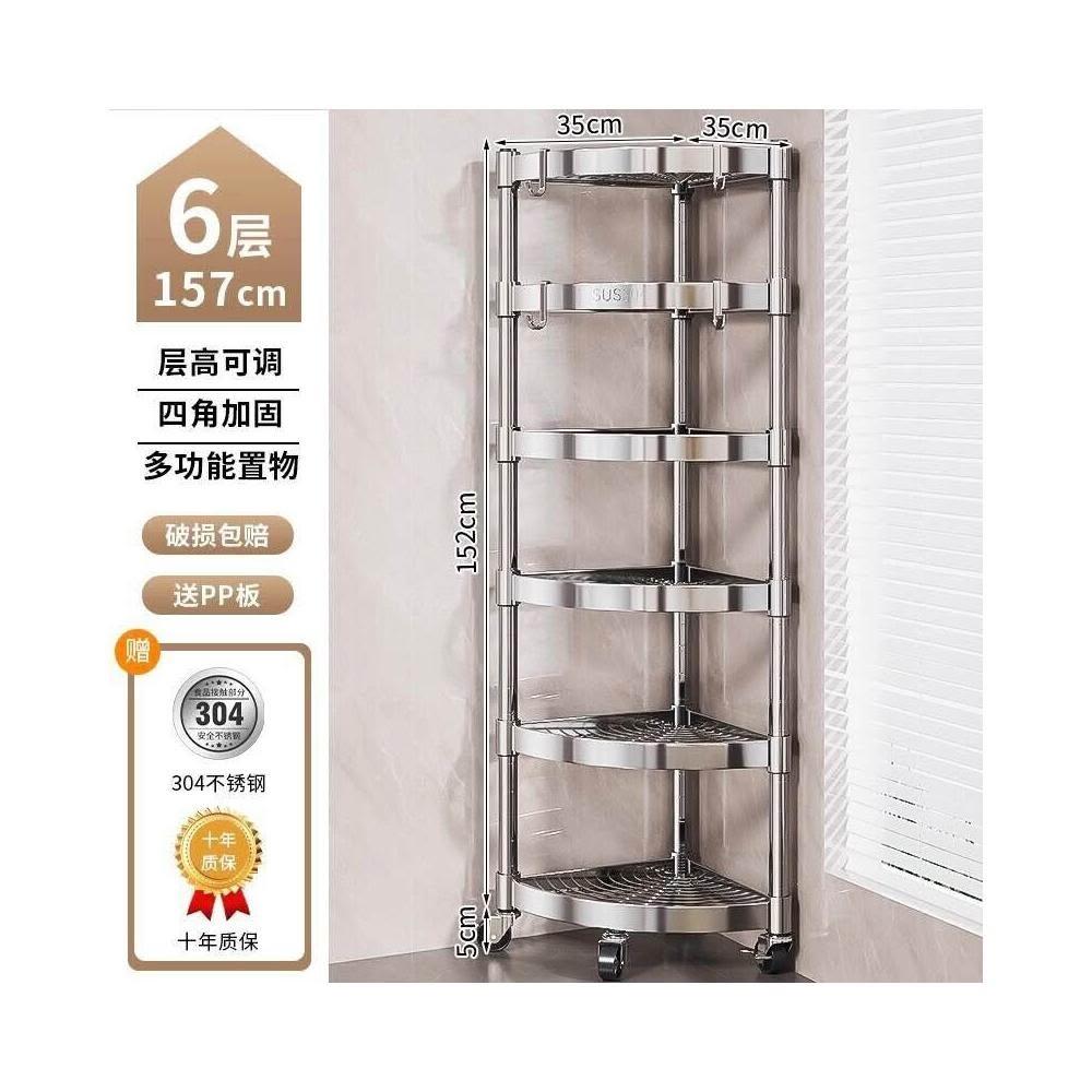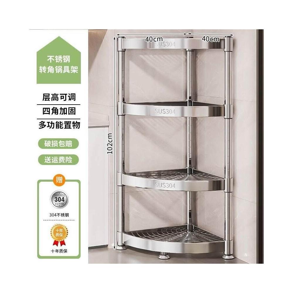 304不銹鋼廚房轉角置物架多功能落地多層墻角收納架浴室三角架子