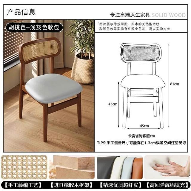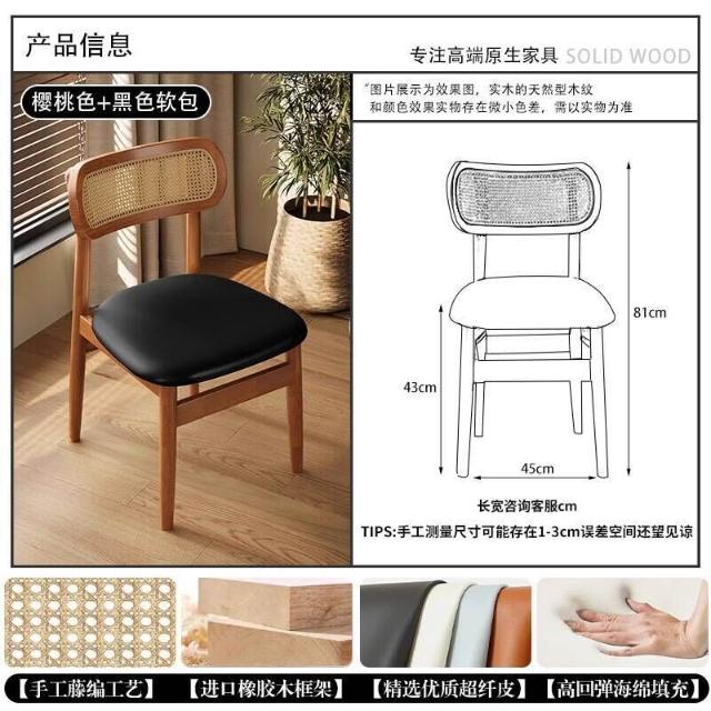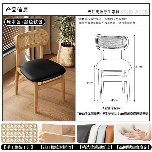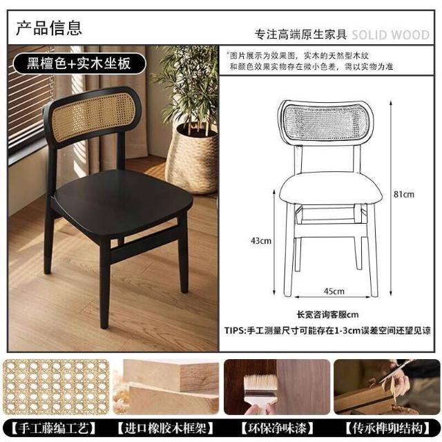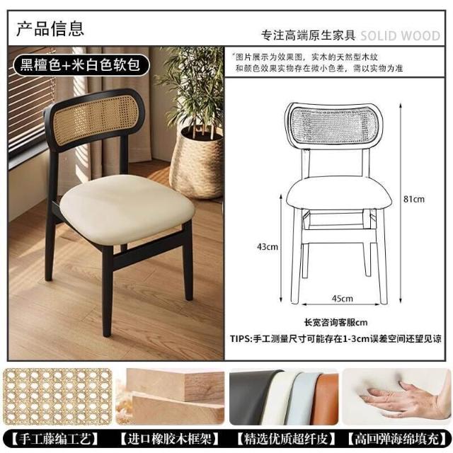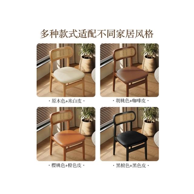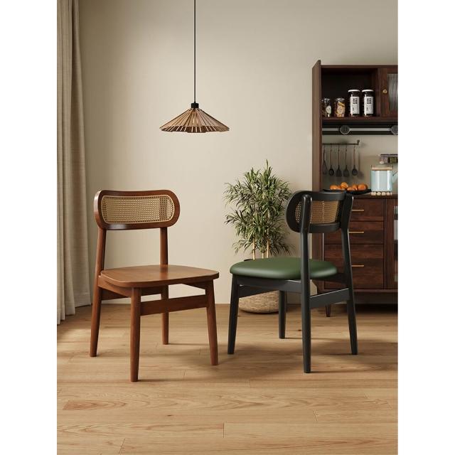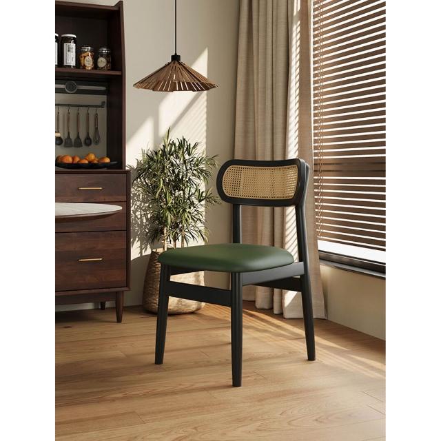 法式實木餐椅家用中古風靠背椅子餐廳高級感餐桌軟包藤編椅子