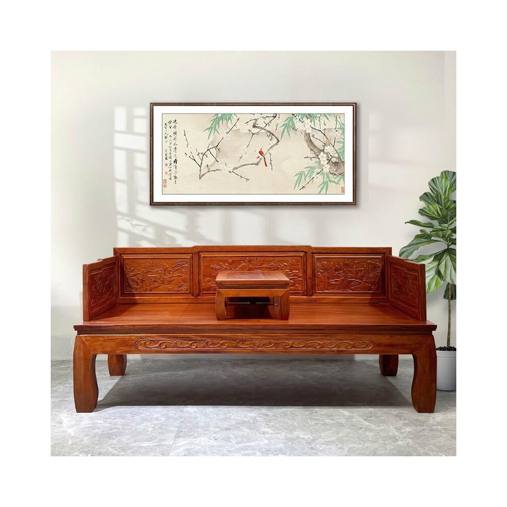 羅漢床新中式實木小戶型1.8米菠蘿格仿古家具客廳禅意沙發床榻