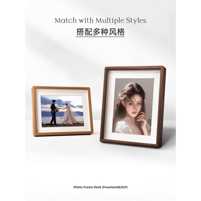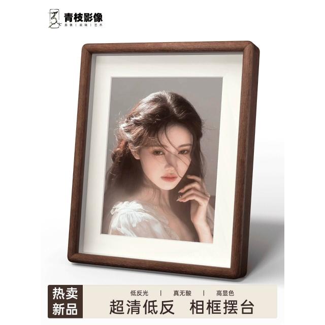 青枝胡桃木柚木相框擺臺高級進口藝術微噴照片打印定製無酸紙相框