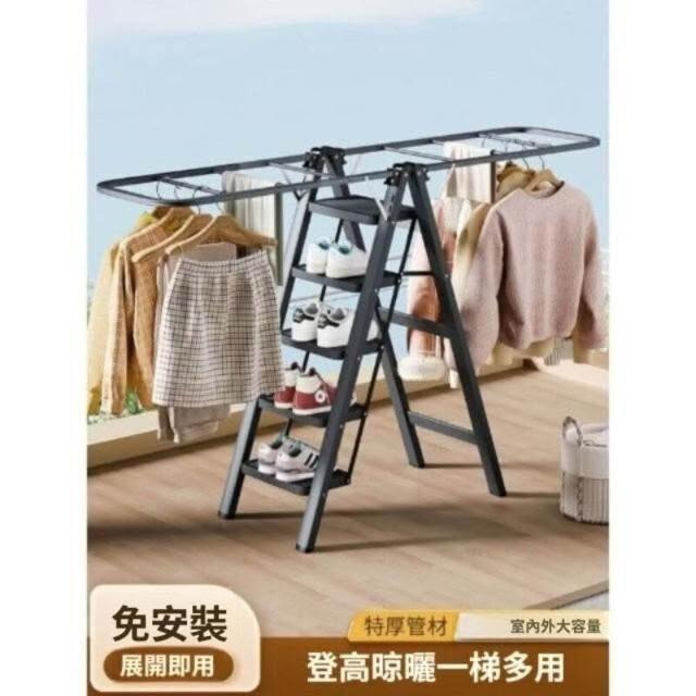 家用梯子折疊落地晾衣架兩用多功能加厚室內人字梯伸縮曬被梯神器