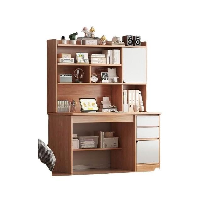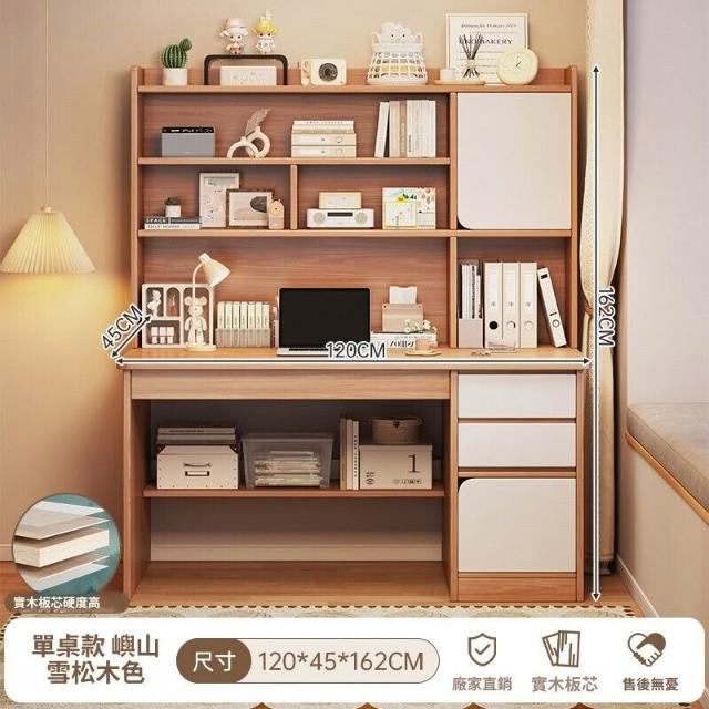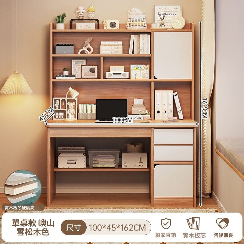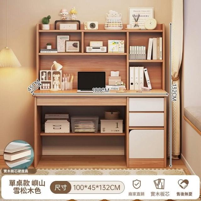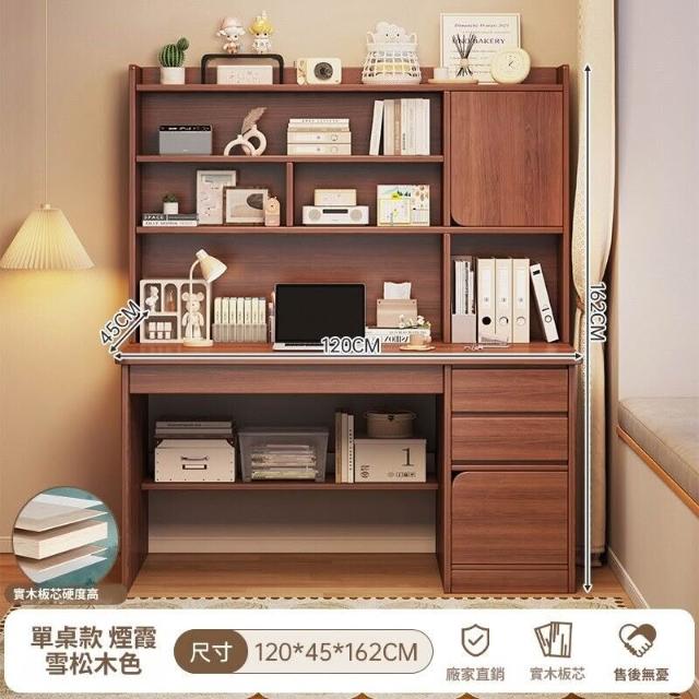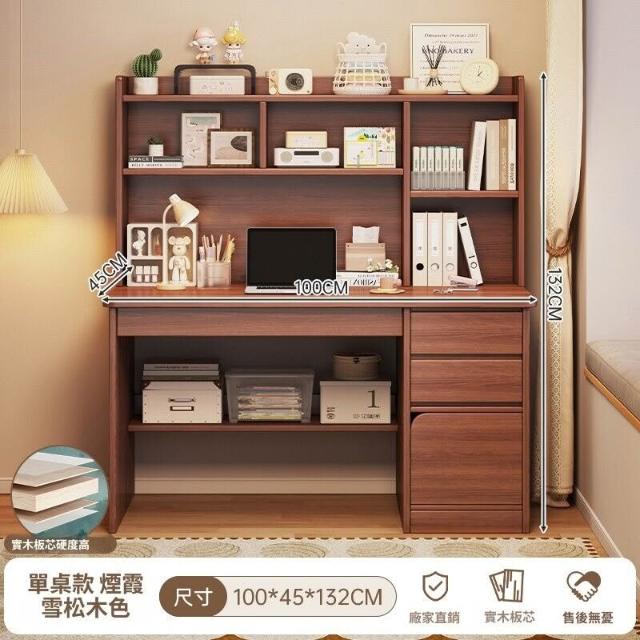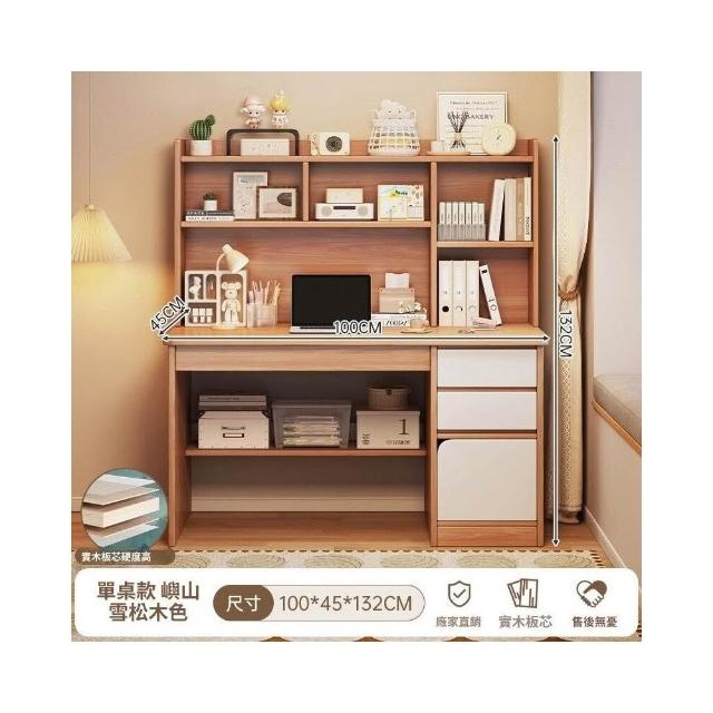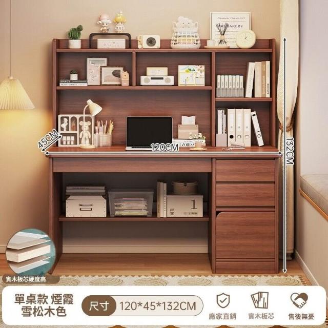 實木書桌學生家用臥室學習寫字桌書桌書架一體帶書櫃抽屜電腦桌子