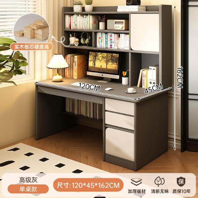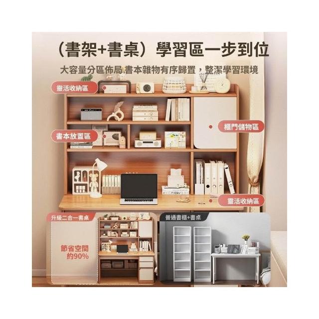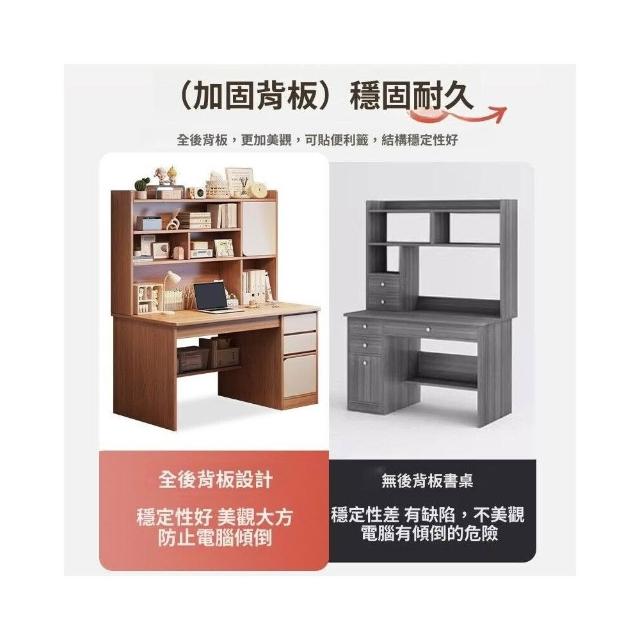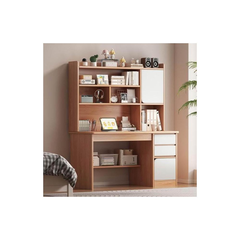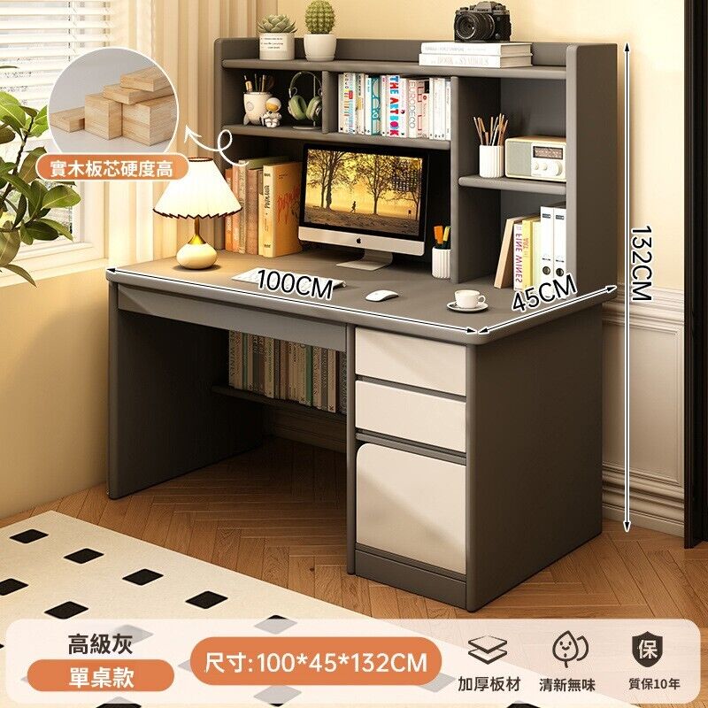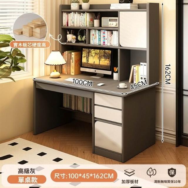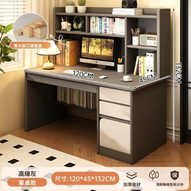 實木書桌學生家用臥室學習寫字桌書桌書架一體帶書櫃抽屜電腦桌子