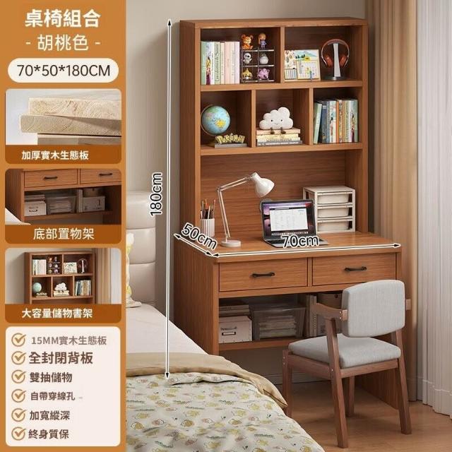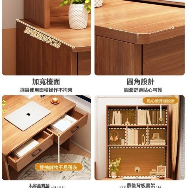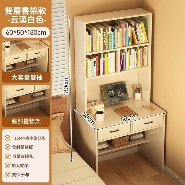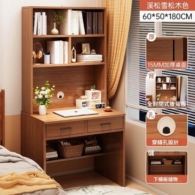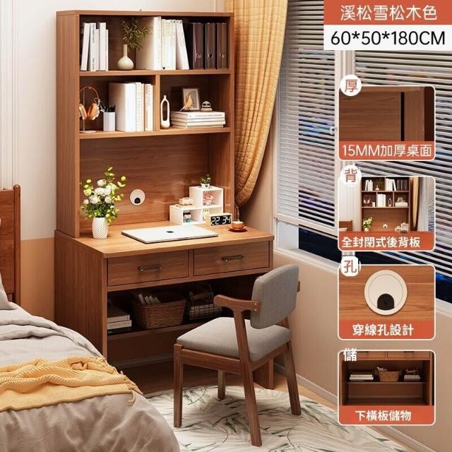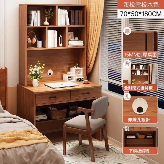 實木書桌書架一體桌小戶型成人電腦桌家用辦公桌子臥室學生寫字桌