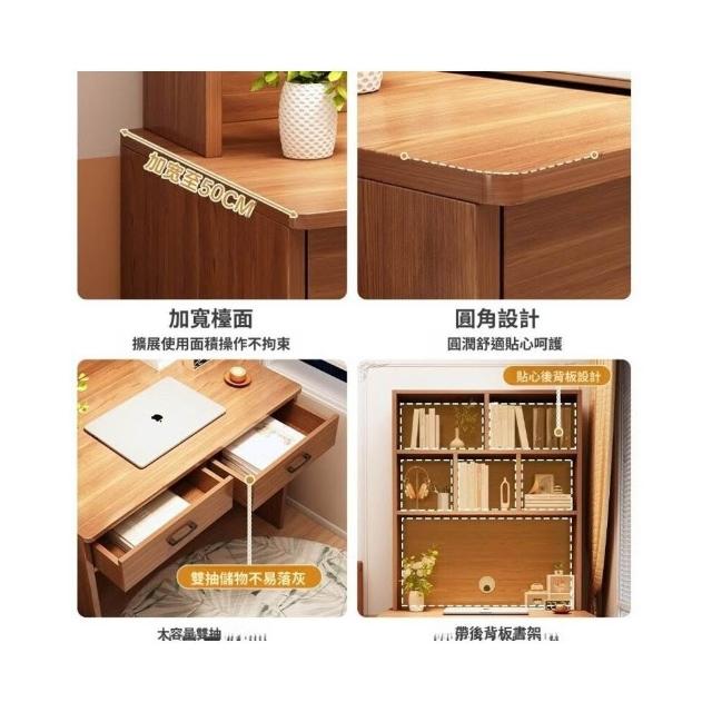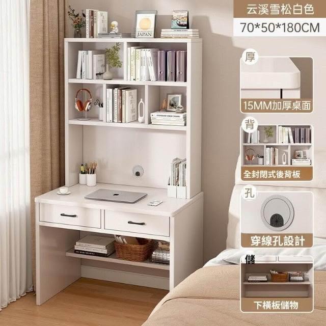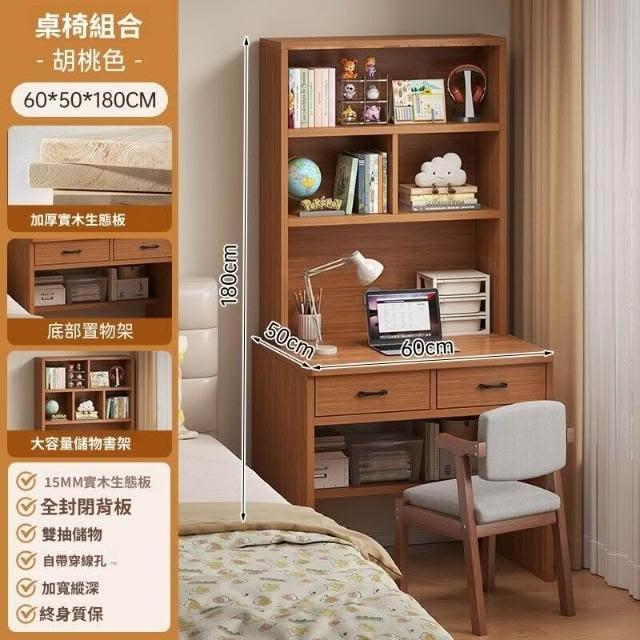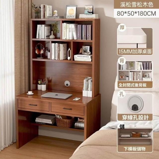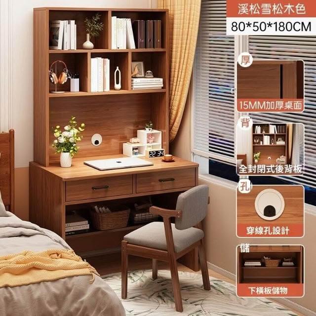 實木書桌書架一體桌小戶型成人電腦桌家用辦公桌子臥室學生寫字桌