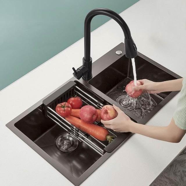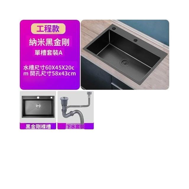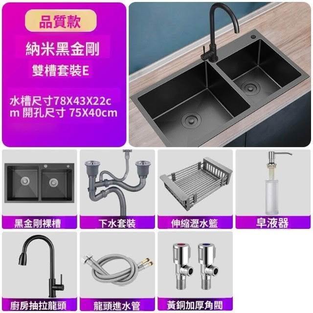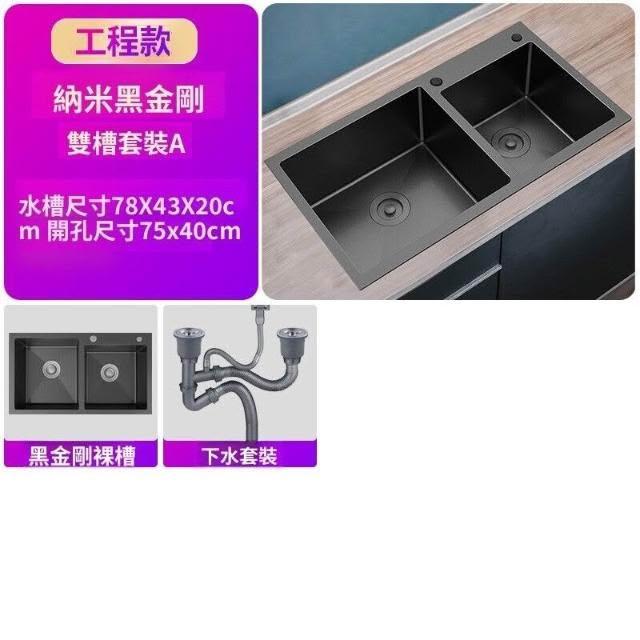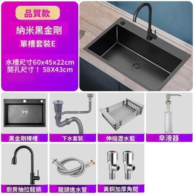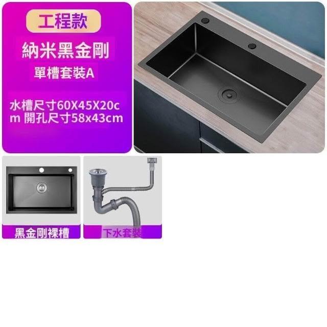 納米黑金剛廚房水槽大單槽抗菌加厚304不銹鋼單雙槽洗菜盆洗碗池